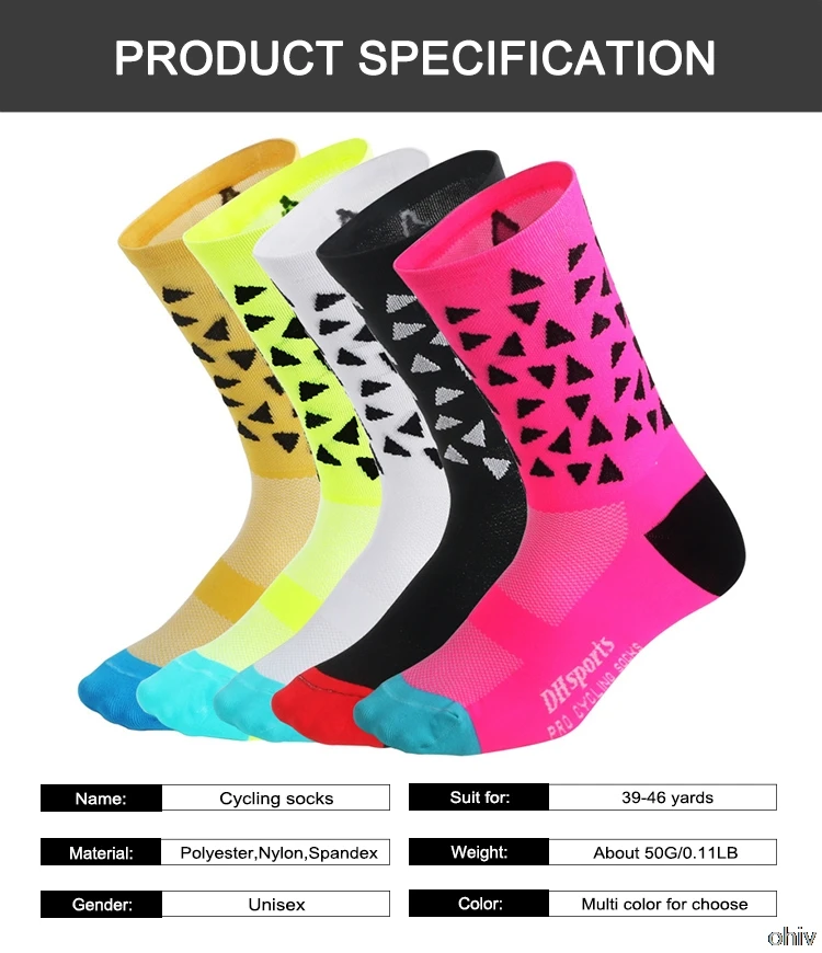 Название: велосипедные носки Материал: полиэстер, нейлон, спандекс Вес: около 50 г/0,11 фунтов Размер: свободный размер Подходит для: 39-46 ярдов Пол: унисекс Цвет: разноцветный на выбор Применение: езда на велосипеде, бег, катание на лыжах, Спорт на открытом воздухе, играть в баскетбол, мотоцикл и т. Д.