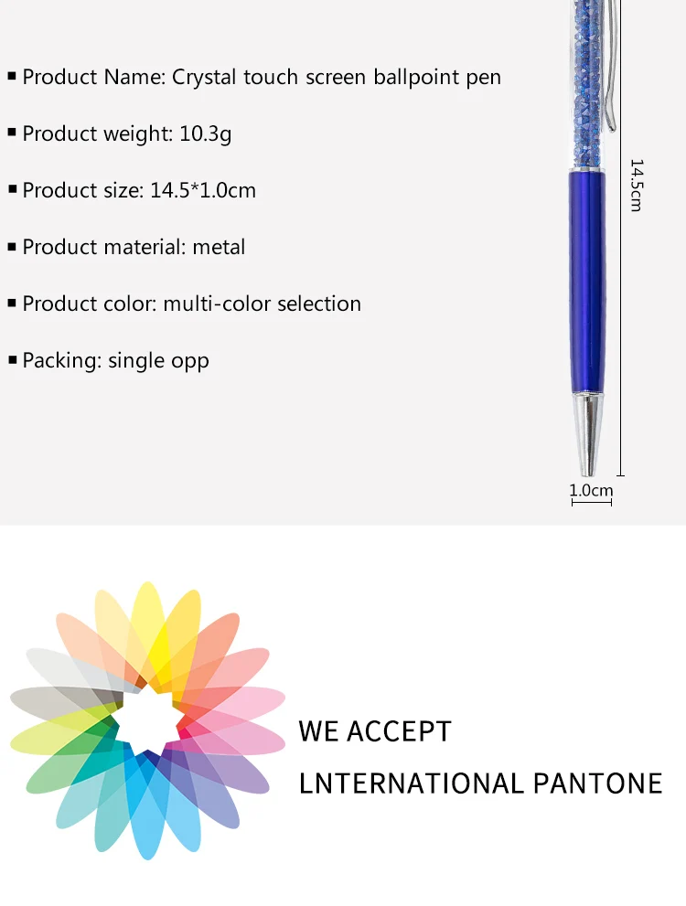 20 шт./лот шариковая ручка с кристаллами по индивидуальному заказу креативная стилус сенсорная ручка 26 цветов Шариковая ручка для письма Канцтовары для офиса и школы