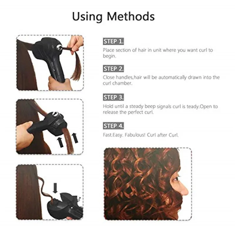 Устали часами пробовать завить волосы, чтобы получить такой профессиональный вид? Ну, настало время использовать новое поколение автоматических щипцов для завивки волос. Профессиональная Автоматическая Плойка для завивки волос помогает легко создавать объемные локоны одним нажатием кнопок. С curl secret ваши волосы автоматически втягиваются в турмалиновую керамическую камеру локонов-там, где они мягко держатся, приурочиваются и нагреваются со всех сторон, чтобы легко создать идеальный локон. Открытый, чтобы высвободить красивый, свободно струящийся локон. Повторите для создания завитков после завитков. Подходит для всех типов и длины волос, поэтому любой человек может создавать великолепные локоны. Керамическая камера для создания гладких завитков. Различные настройки таймера, различный эффект завивки. Множество заданных температур, от 190 °C до 230 °C температура регулируется. Мощный нагрев, система готова к использованию за считанные секунды с ультра-быстрым восстановлением тепла. Curl управление направления для равномерного или естественного финиша (вправо/влево/Авто). Подходит для более коротких и длинных волос. Включение/выключение и автоматическое отключение. Мощность переключатель и температурных режима: в тех случаях, когда Мощность, правая сторона Красного светильник начал мигать. Когда достигается заданная температура, светильник индикатора питания всегда и выключается через 72 минуты. * Регулируемый температурных режима и автоматическое отключение могут сделать прическу и защищая ваши волосы в одно и то же время * ЖК-дисплей цифровой дисплей с тепловым индикатор готовности светильник и Пароварка Curl включает в себя три направления настройки-вправо/влево/ авто и Три таймера настройки для завивки различных причесок Три таймера настройки: • 8 секунд/4 звуковых сигнала, Натуральные локоны • 10 секунд/5 звуковых сигналов для мягких упругих локонов • 12 секунд/6 звуковых сигналов для тугих, определенных локонов три режима нагрева: • 190C (380F) для деликатных, тонкие или окрашенные волосы • 210C (410F) для нормальных текстурированных волос • 230C (450F) Для густых ИЛИ волнистых волос * можно использовать чистую de-ionised воду и эфирные масла, чтобы сделать бигуди для волос и сохранить волосы в быстрой завивки и увлажнения; * Используйте 360C без запутывания вертлюг с 2,5 м шнуром питания быть удобным для ручки в разных направлениях и месте; параметры: 1. размер продукта: 35 см × 10 см х 9 см; 2. вес 0.9KGS; 3: Материал: керамика; 4: мощность: 30 Вт, 110-240 В; 5: Температурный Дисплей: lcd; 6: Максимальная температура: 230 °C; 7: напряжение 110-120V-5HZ-35W/220-240V-60HZ-60W; 8: Тип обогревателя: Установка нагрева PTC O-выключение питания |-190 ℃ мягкие и окрашенные волосы |--210 ℃ | обычные волосы |--230 ℃ толстые и незамысловатые объем завитые волосы Установка времени: 0-нет звука, напоминаем, когда волосы включены в непрерывный нагрев через 15 секунд 8-8 секунд, Для распущенных волн (микро-объем) 3 звуковых сигнала 10-10 секунд, для мягких локонов (мягкий объем), 4 звуковых сигнала 12-12 секунд, для более определенных локонов (сильный объем), 5 пищит чем дольше использование, тем больше объем волос. Для распущенных волн/для мягких локонов/для более четких локонов. Настройка направления скручивания (вправо/влево/Авто) Используйте управление направления скручивания для выбора равномерного или естестве