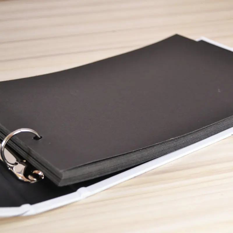 Внутренние страницы изготовлены из высококачественного альбомного черного картона, который имеет высокую твердость и не легко влажный и деформируется.