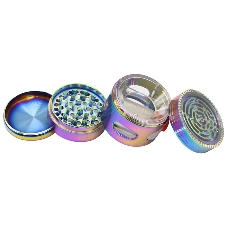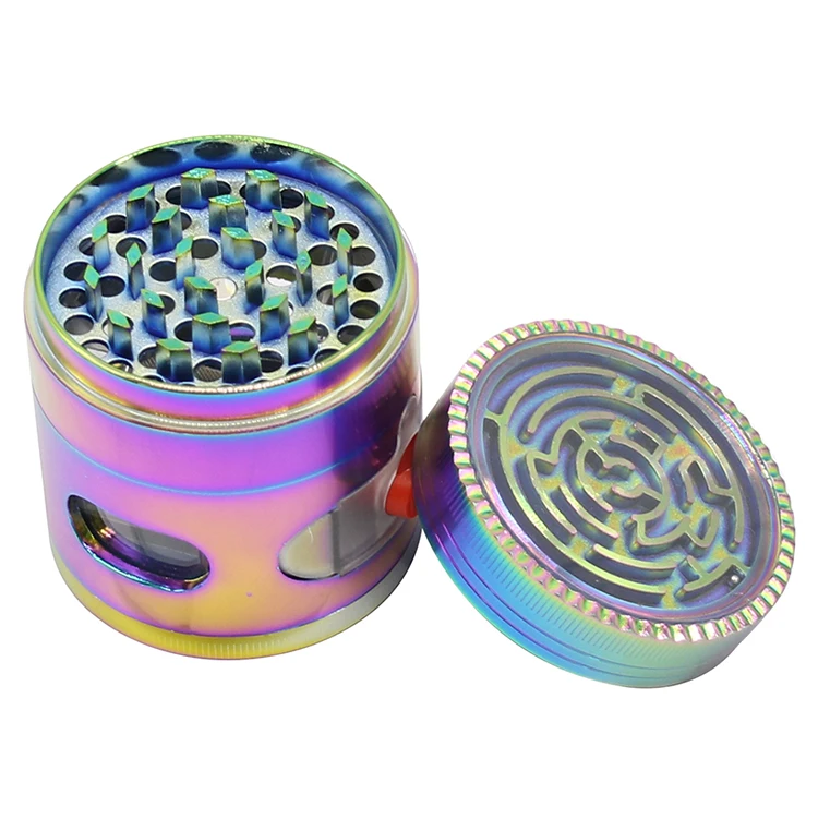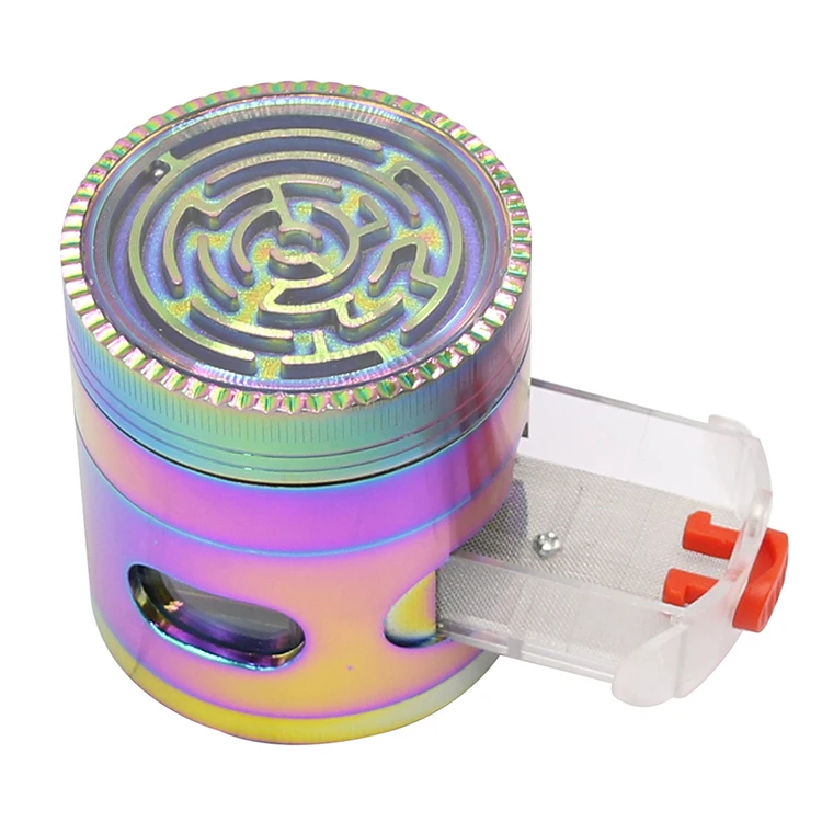 Радужный Цвет Лабиринт дизайн верхняя крышка 63 мм ящик тип хранения слой цинковый Металл Подгонянный Табак Курительная травяная шлифовальная машина сорняки