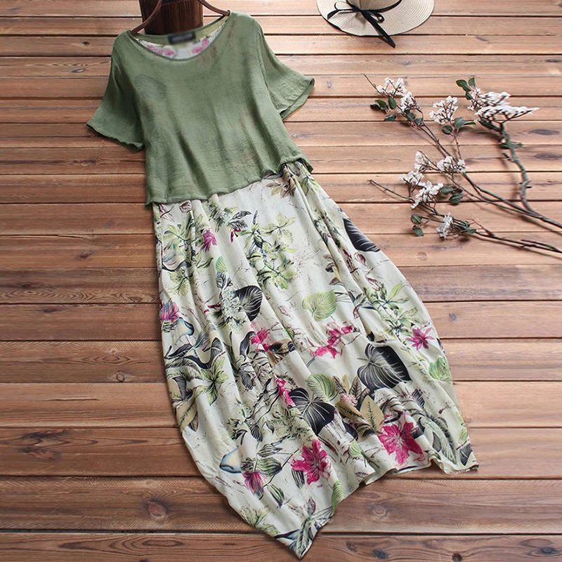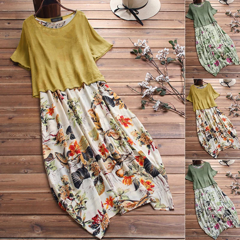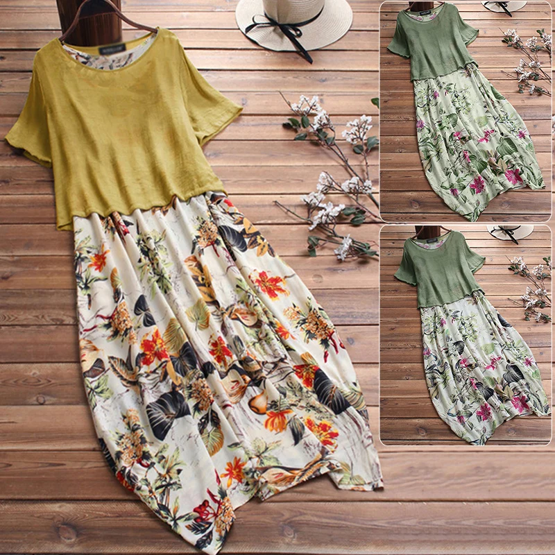 * Описание товара:Женская одежда, летнее богемное свободное платье с короткими рукавами и принтом, платье средней длины, Пляжное праздничное платье из 2 предметов, большие размеры