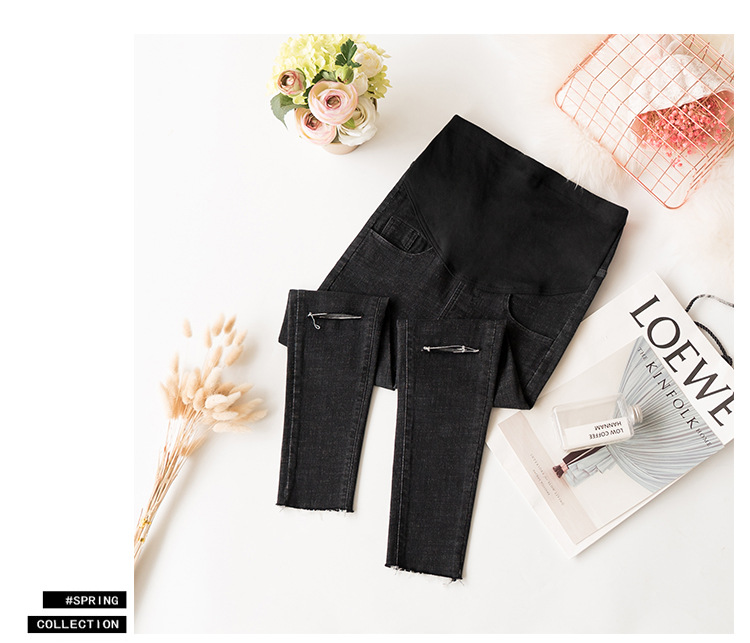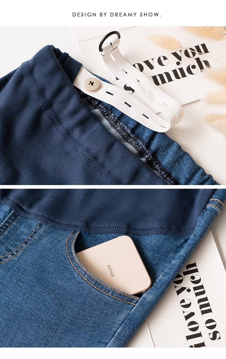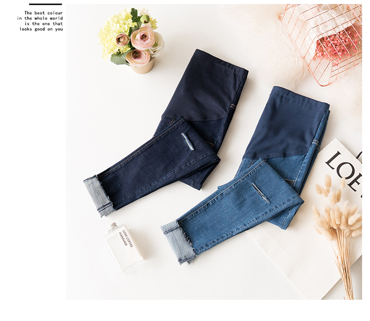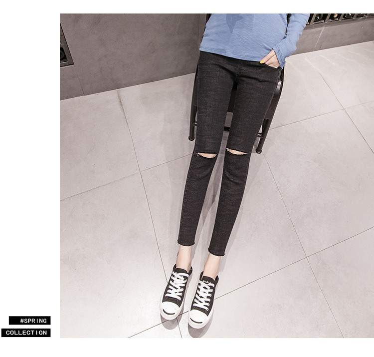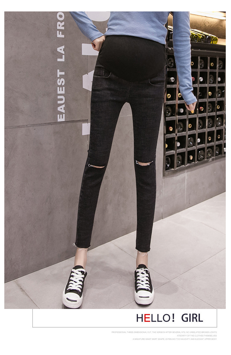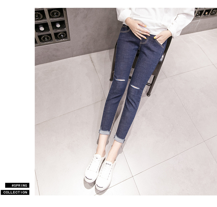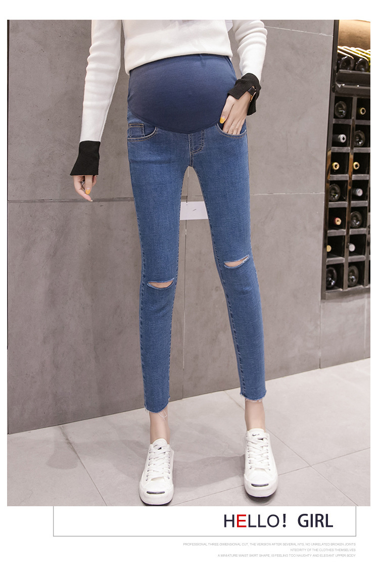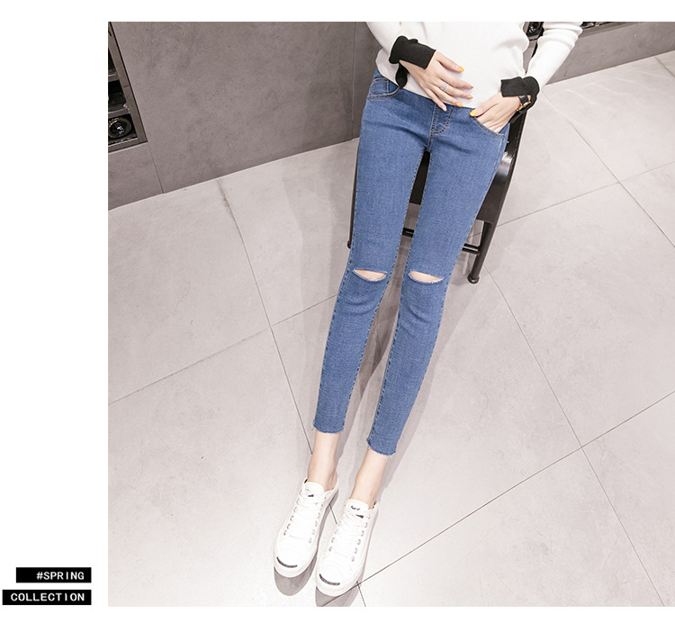 Весенние повседневные тянущиеся джинсы для беременных; брюки с высокой талией для беременных; узкие брюки с дырками и пуговицами; джинсовые брюки для беременных