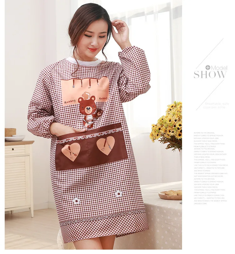 AprinceКухняФартукКорейский стиль взрослый кухонный чехол с длинным рукавом мультяшный взрослый задний износ маслостойкий фартук