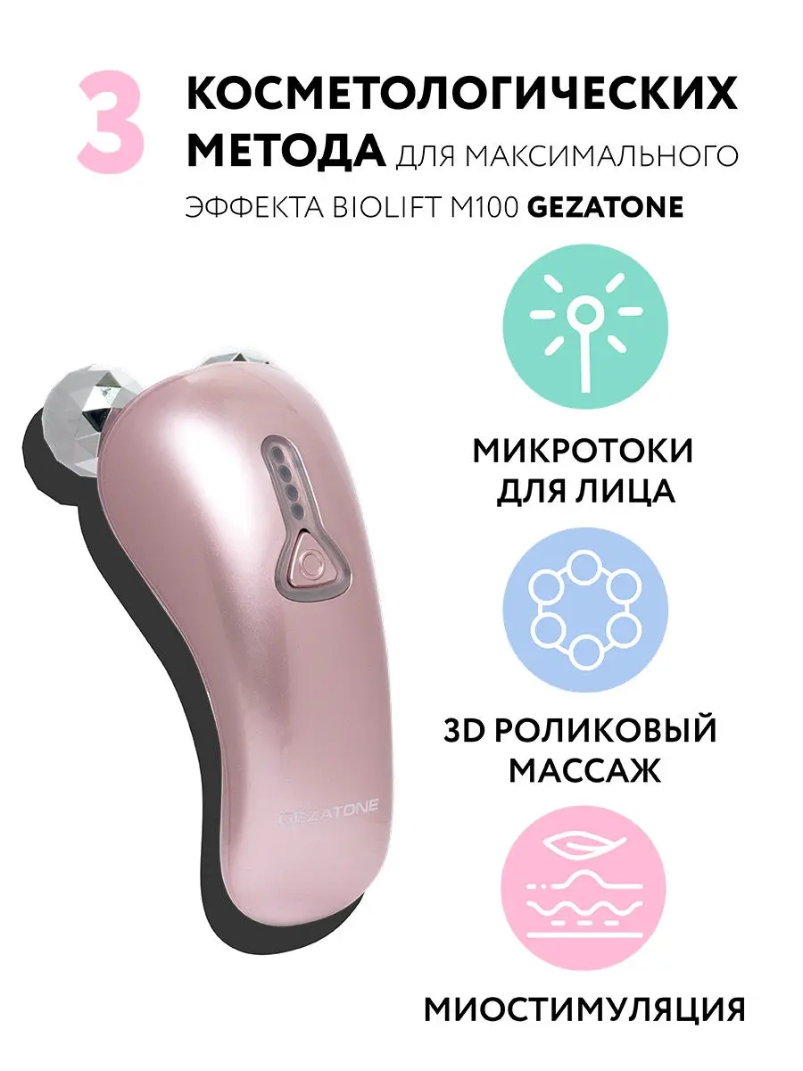 В аппаратной анти-эйдж косметологии наиболее эффективными признаны комплексные процедуры, сочетающие несколько методов воздействия. Для омолаживающих процедур Gezatone предлагает 3D роликовый массажер Biolift m100S, объединяющий микротоки и миостимуляцию для устранения возрастных изменений и лифтинга кожи лица.