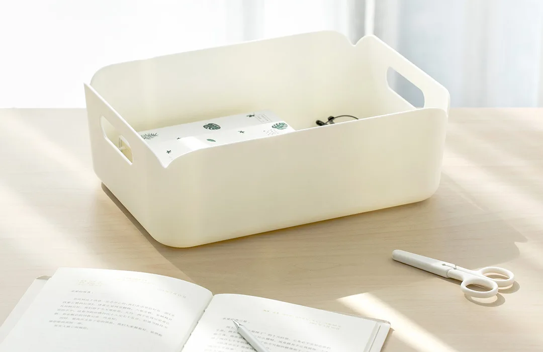 ● Многоцелевой ящик для хранения, универсальный ящик для хранения, многоступенчатое использование, ● Штабелируемый дизайн, портативный, автономный, легко перемещается ● Высококачественный материал для защиты окружающей среды, безопасный и безвредный, прочный ● Дизайн простой с задним карманом, чисто белый изящество, круглые клаксоны дизайн, избегать воздействия острых предметов угол для царапины, удобный и чистый ● Оснащен нескользящей прокладкой, она может лучше зафиксировать положение ящика для хранения, избежать случайного скольжения и перемещения