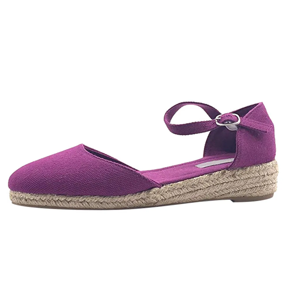 Женские сандалии с ремешком на щиколотке и пряжкой; босоножки на танкетке; летняя тканевая дышащая обувь