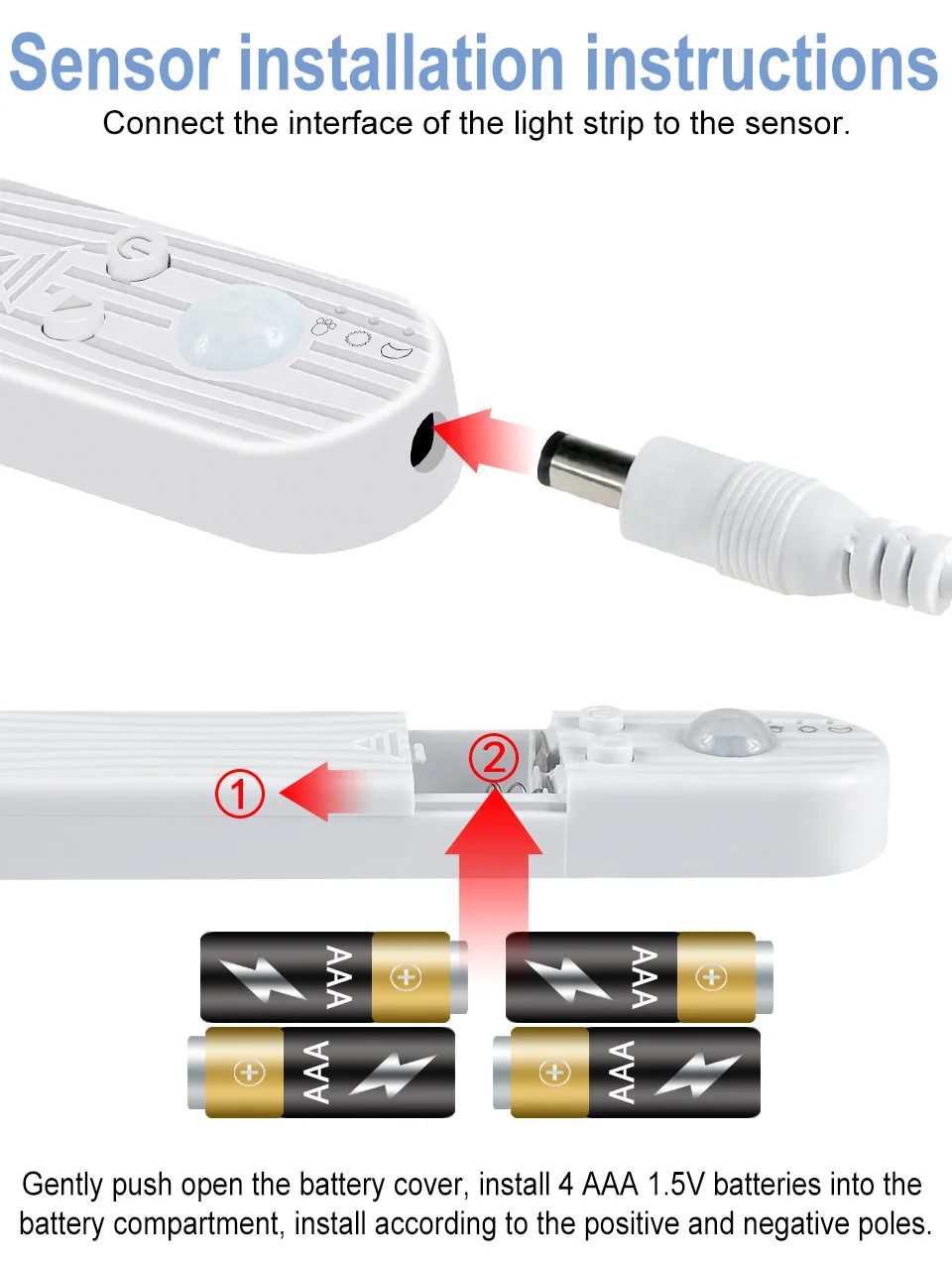 A: 1 x светодиодныйСветильникПолоса +1 x светодиодный блок управления датчиком движения (батарея не входит в комплект)