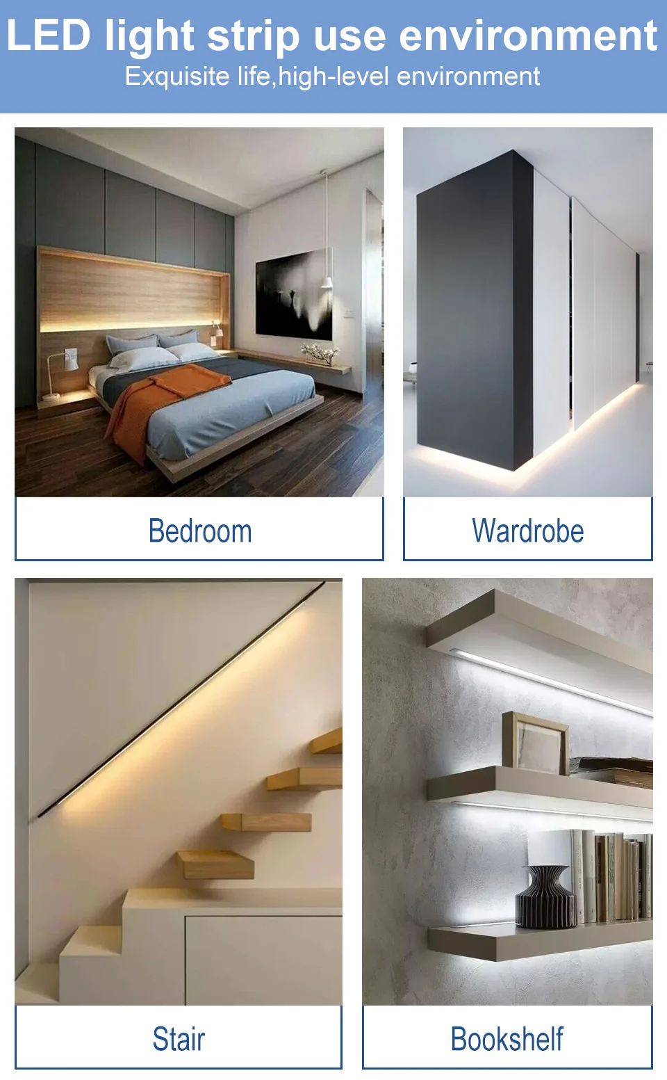 *Домашний декор:Светильник можно спрятать в зеркалах, потолках, стенах, полу, занавесках, книжных полках, полках или шкафах в темном корыте, обрисовать пространство, обогатить многослойное пространство, дайте пространство для красоты температуры в темноте, чтобы вы чувствовали себя тепло и комфортно.