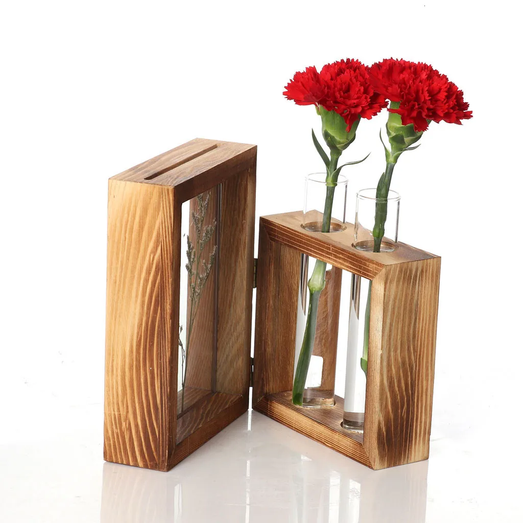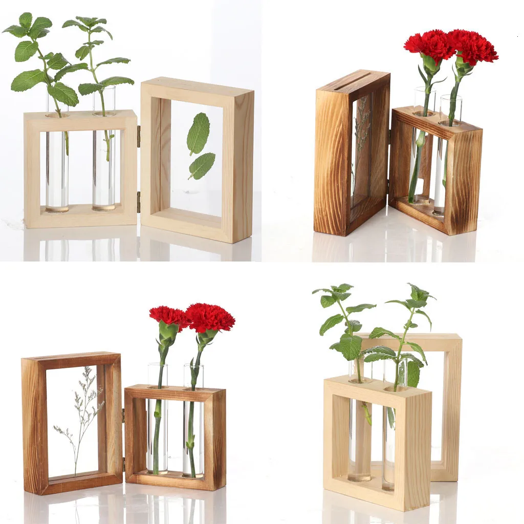 Креативная прозрачная ваза с гидропонным растением деревянная рамка декор для кофейни