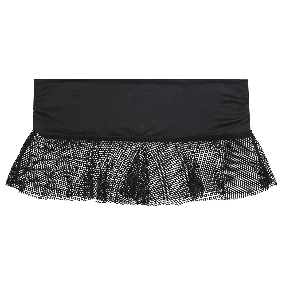 Широкий эластичный пояс с низкой посадкой и прозрачной сетчатой отделкой.