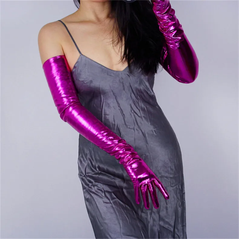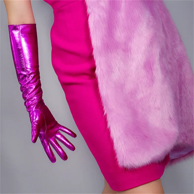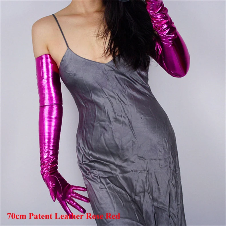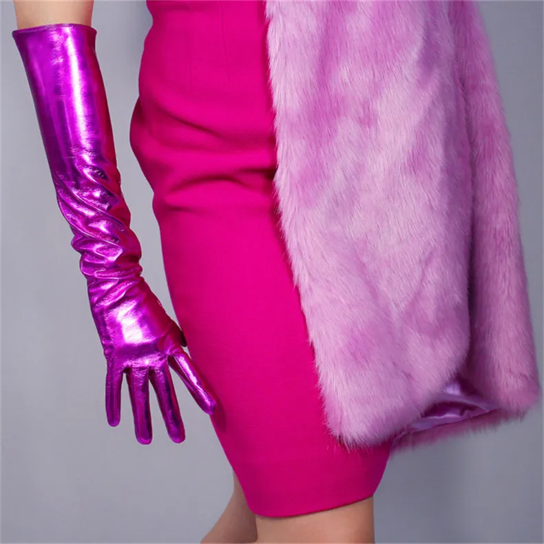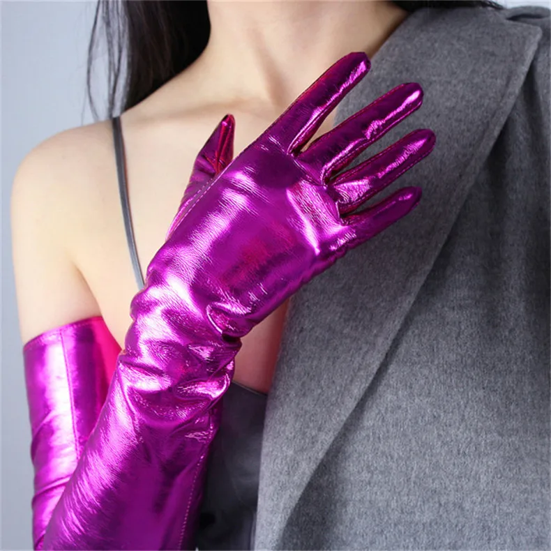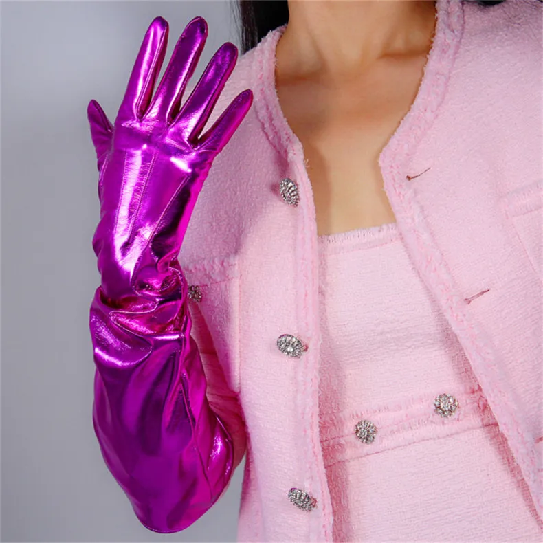 2020 новые лакированные кожаные Удлиненные перчатки 70 см Длинные Стильные эмуляционные кожаные эластичные зеркальные Яркие Кожаные розово-красные женские WPU66