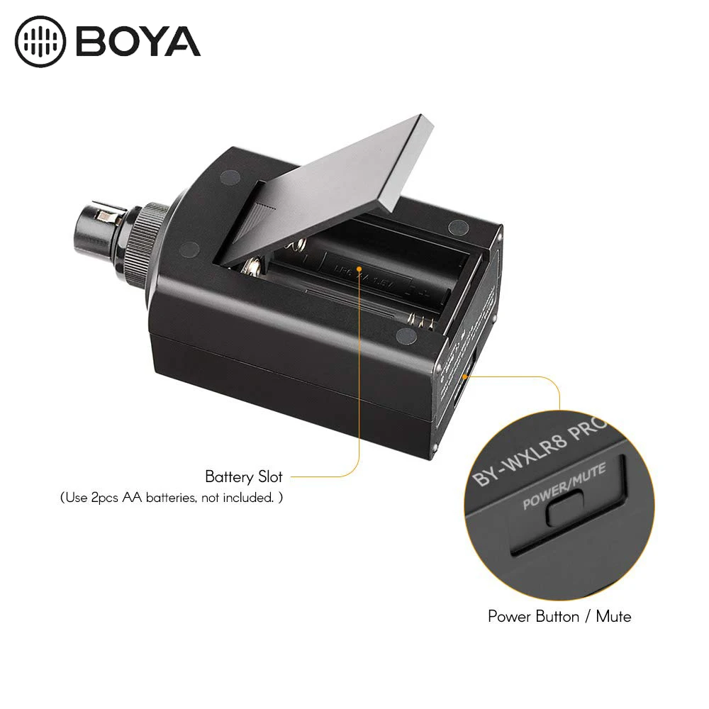 BOYA BY-WXLR8 Pro 48-канальный комплект микрофона включает в себя: передатчик подключаемого модуля на ЖК-дисплей Дисплей XLR Сделано в Китае 3,5 мм линейный вход с BOYA BY-WM8 /BY-WM6 приемник