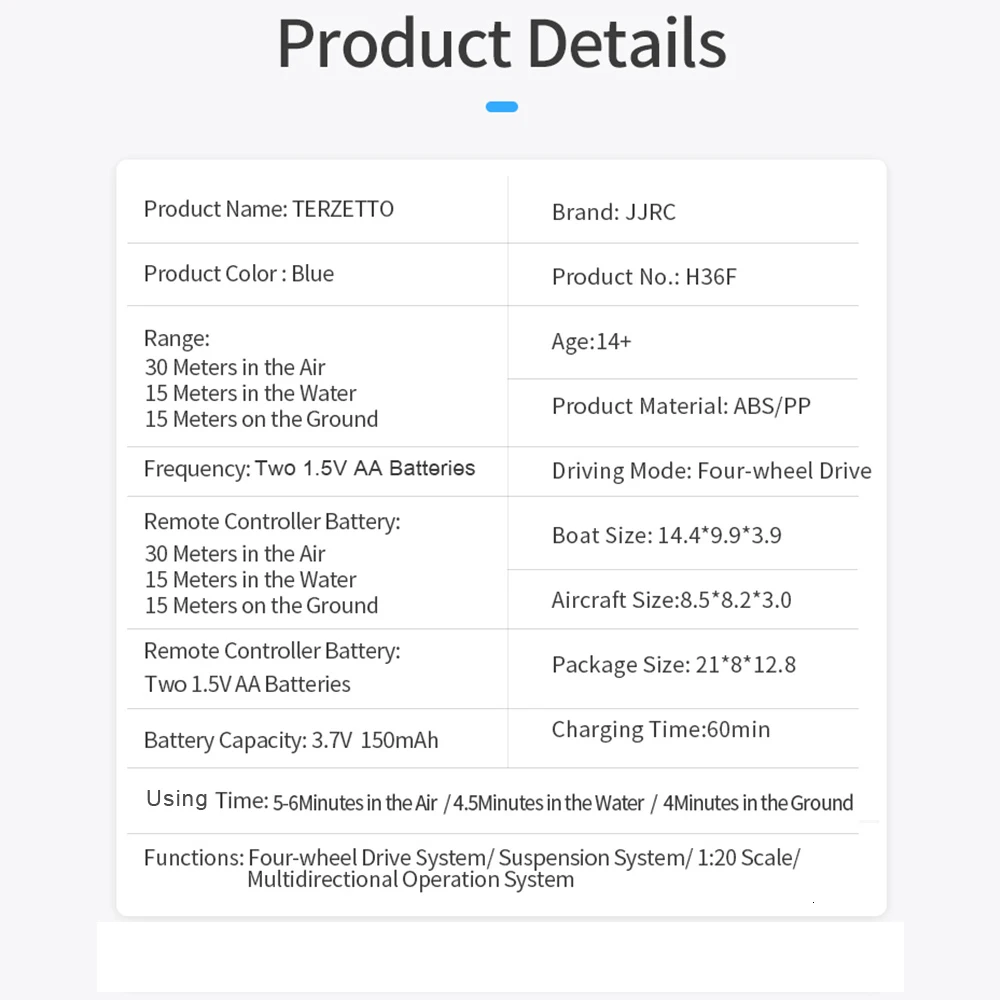 Этот уникальный Дрон оснащен тремя режимами, включая воздушный режим, водный режим и наземный режим в одной форме. Легко собрать и разобрать, что предлагает вам различные методы игры. Кроме того, благодаря яркому и привлекательному внешнему виду, вы получите уникальный опыт полета. Есть два скоростных режима высокой и низкой скорости, чтобы вы могли свободно переключаться, обеспечивая гибкое и стабильное вождение. Если вы ищете подарок для детей, приходите и попробуйте!