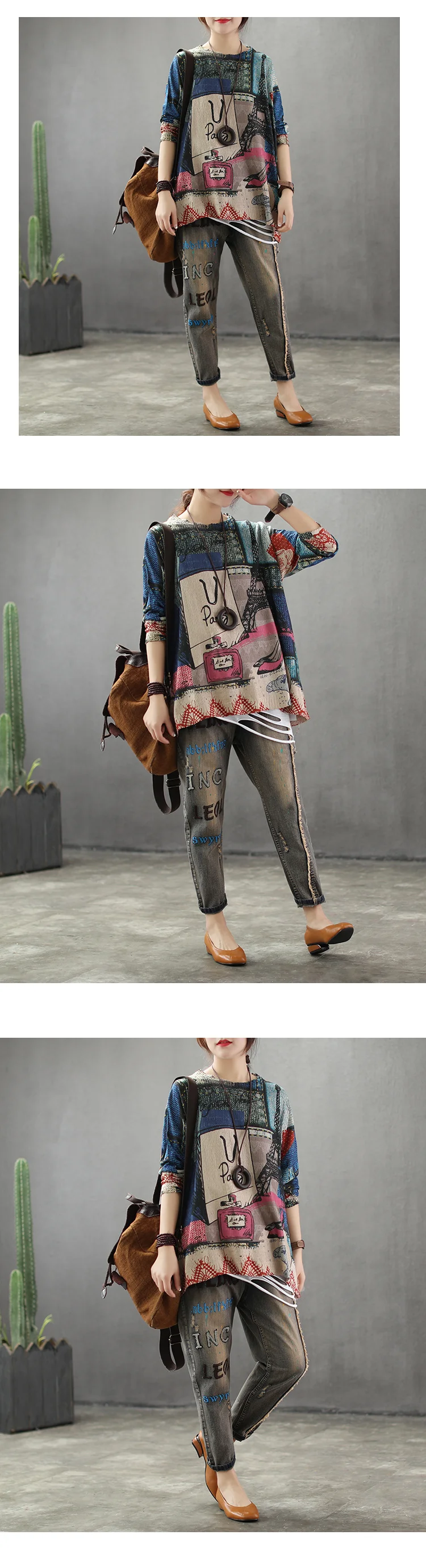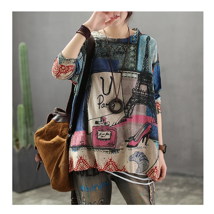 Корейский модный винтажный вязаный свободный свитер с принтом