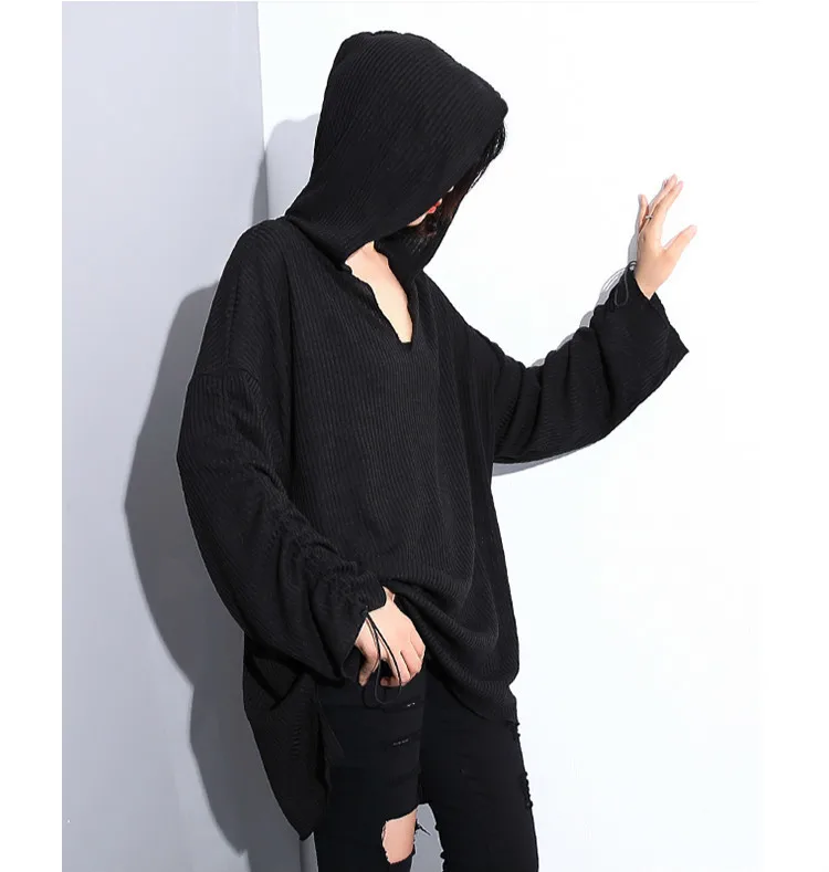 Европейский Модный повседневный вязаный длинный пуловер с капюшоном