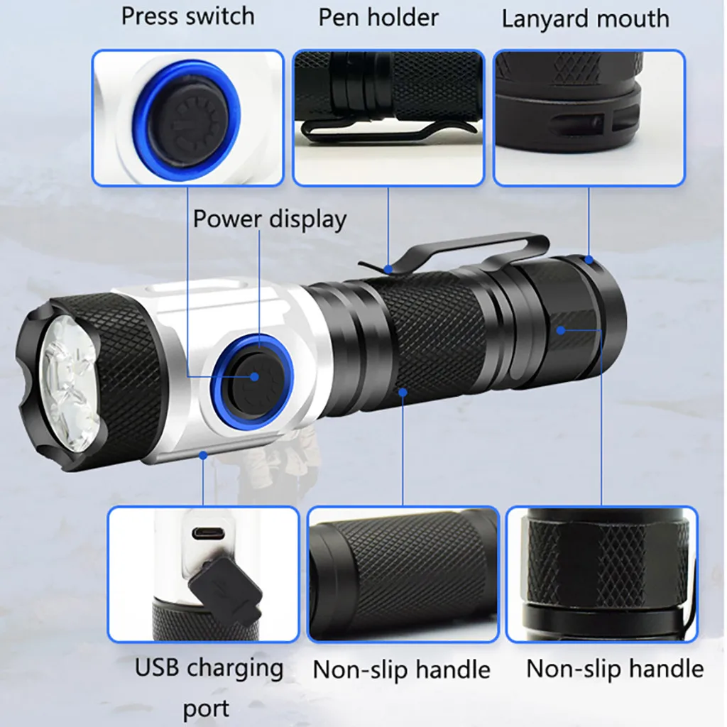 Светодиодный Многофункциональный тактический фонарик с usb-зарядкой, комплект мини-фонарика