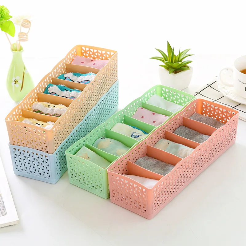 5 сеток корзина для хранения шкаф Органайзер косметический ящик для хранения носков нижнее белье галстук пластиковый контейнер органайзер для макияжа