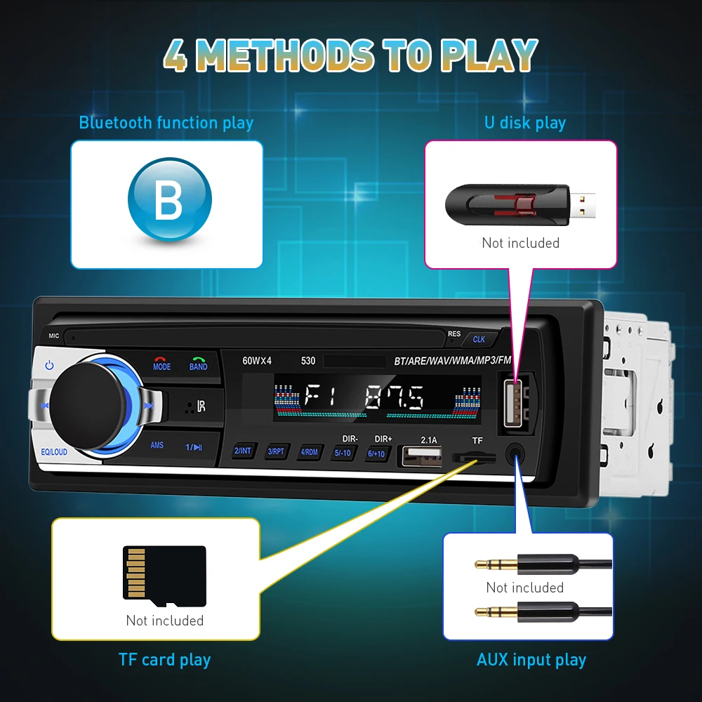 Bluetooth 4,0 Автомобильный MP3-плеер авто мультимедийная система стерео звук TF Aux вход двойной USB