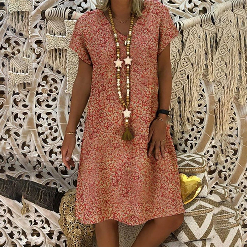 * Описание товара: женская мода, принт, v-образный вырез, с короткими рукавами, Пляжная, повседневная, свободная