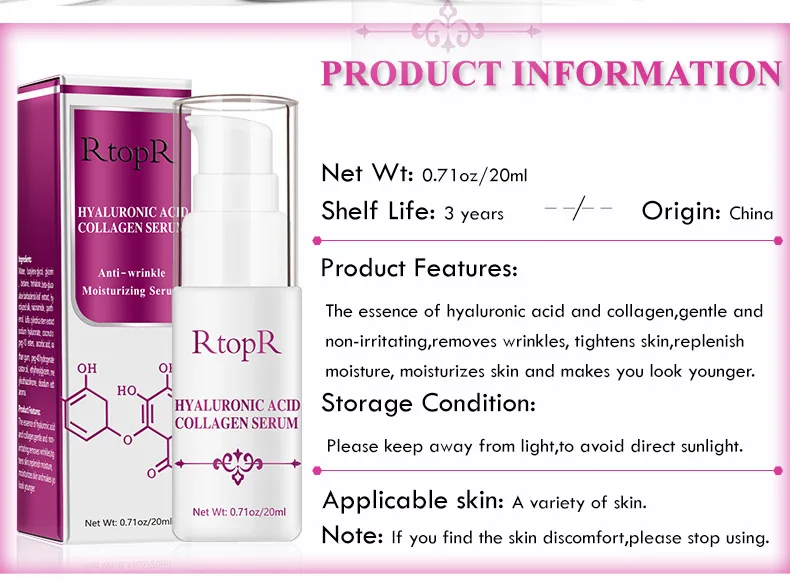 Эссенция гиалуроновой кислоты и коллагена, нежная и не раздражающая, удаляет морщины, подтягивает кожу, восстанавливает влагу, увлажняет кожу и делает вас моложе