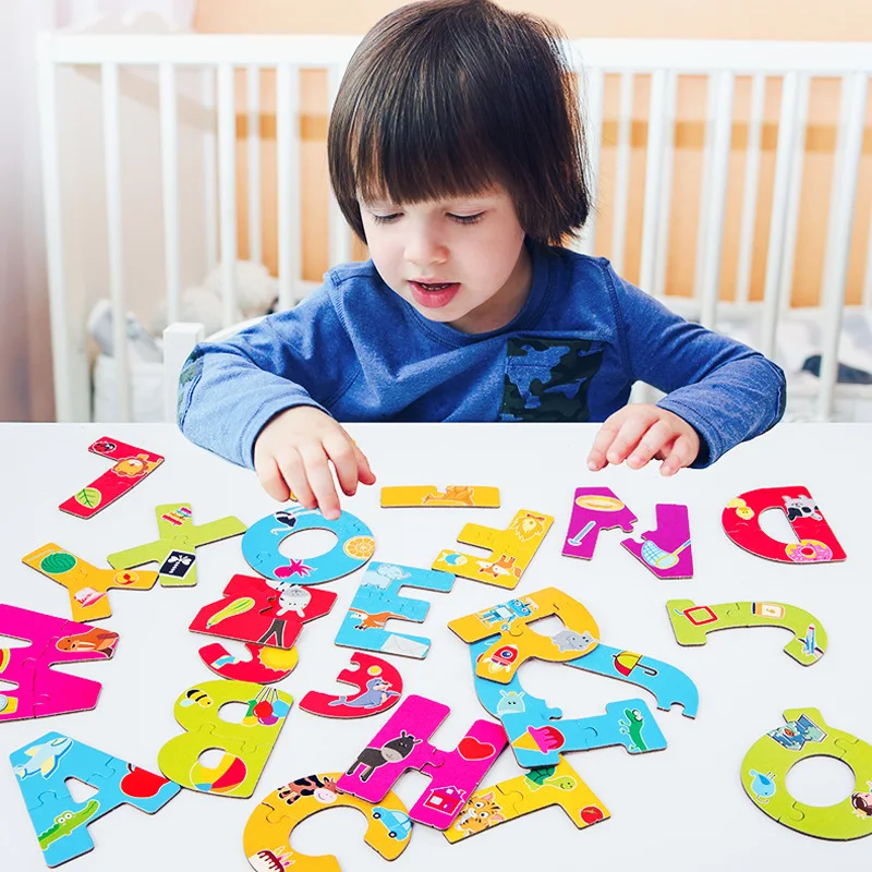 Детские бумажные познавательные головоломки, английские игрушки, Мультяшные Детские алфавиты, цифры, бумажные пазлы, Обучающие игрушки для детей