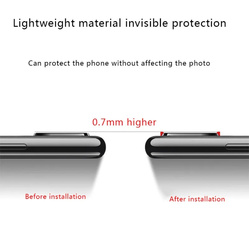 Легкий материал, Невидимая защита, может защитить телефон, не влияя на фото гибкой закаленной пленки объектива, более профессиональный выбор 2.5D HD текстуры. Неразрушающее качество фото. Всестороннее покрытие, устойчивость к царапинам и износу, более комплексная защита нано-адсорбции, стабильная и долговечная Высокая четкость неразрушающего качества изображения, точность шлифования, яркая и тщательная, снимает больше HD и фокусирует