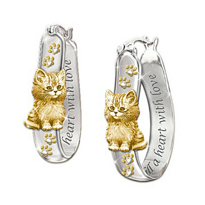 Новые женские милые серьги-кольца с котом, двухцветные серьги с принтом лапы, милые ювелирные изделия с животными, модные серьги для друзей, подарокUS $2,53