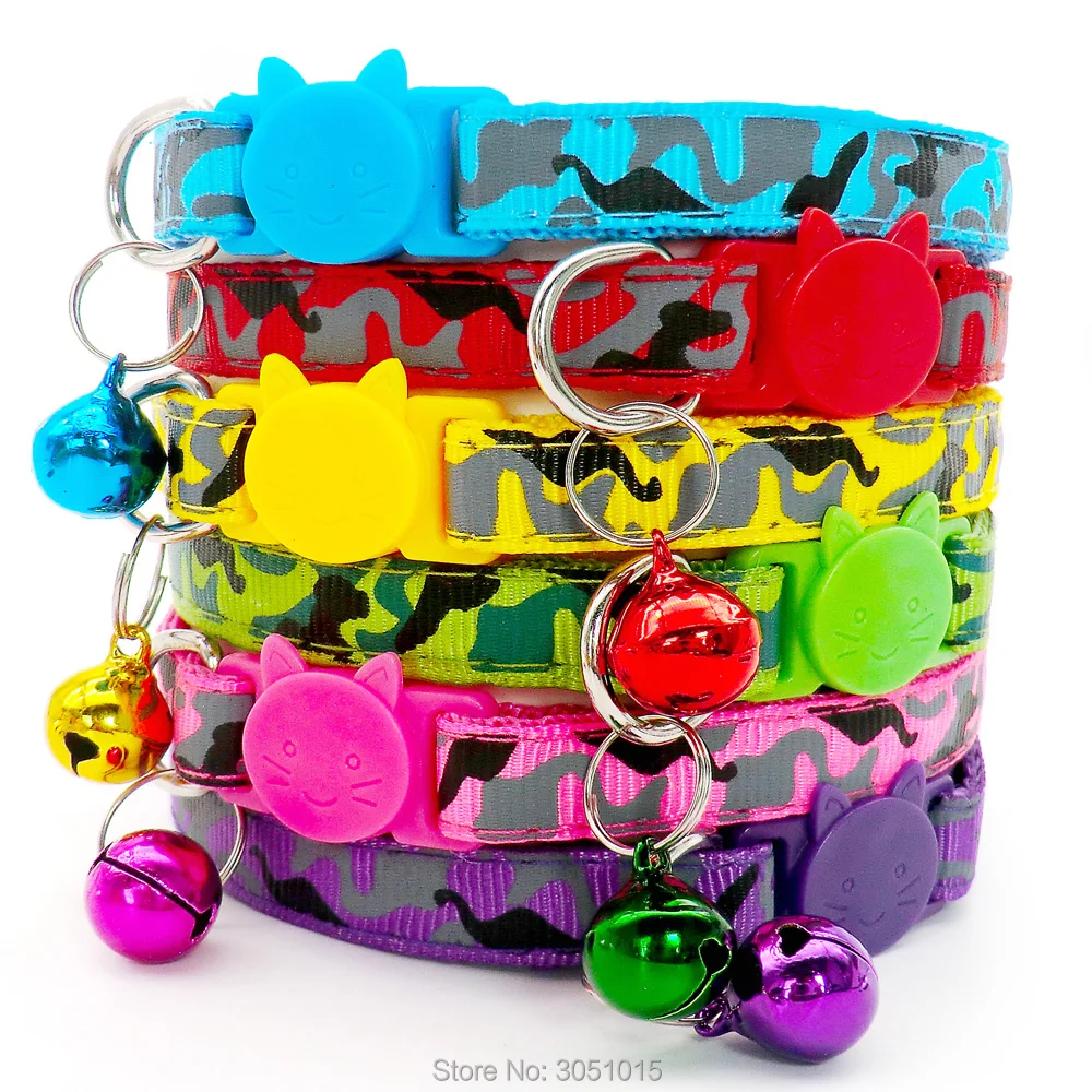 Оптовая продажа 100 шт Регулируемый ошейник для щенка камуфляж ошейник для щенка ошейник с колокольчиками ожерелье ошейник для маленьких собак ошейники для кошек
