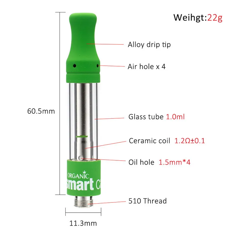 Green Vape Smart Cart картриджи с керамической катушкой, резиновый Топ, 1,0 мл, умная корзина, стеклянный бак Pyrex, 510 нитей, масляный распылитель CBD