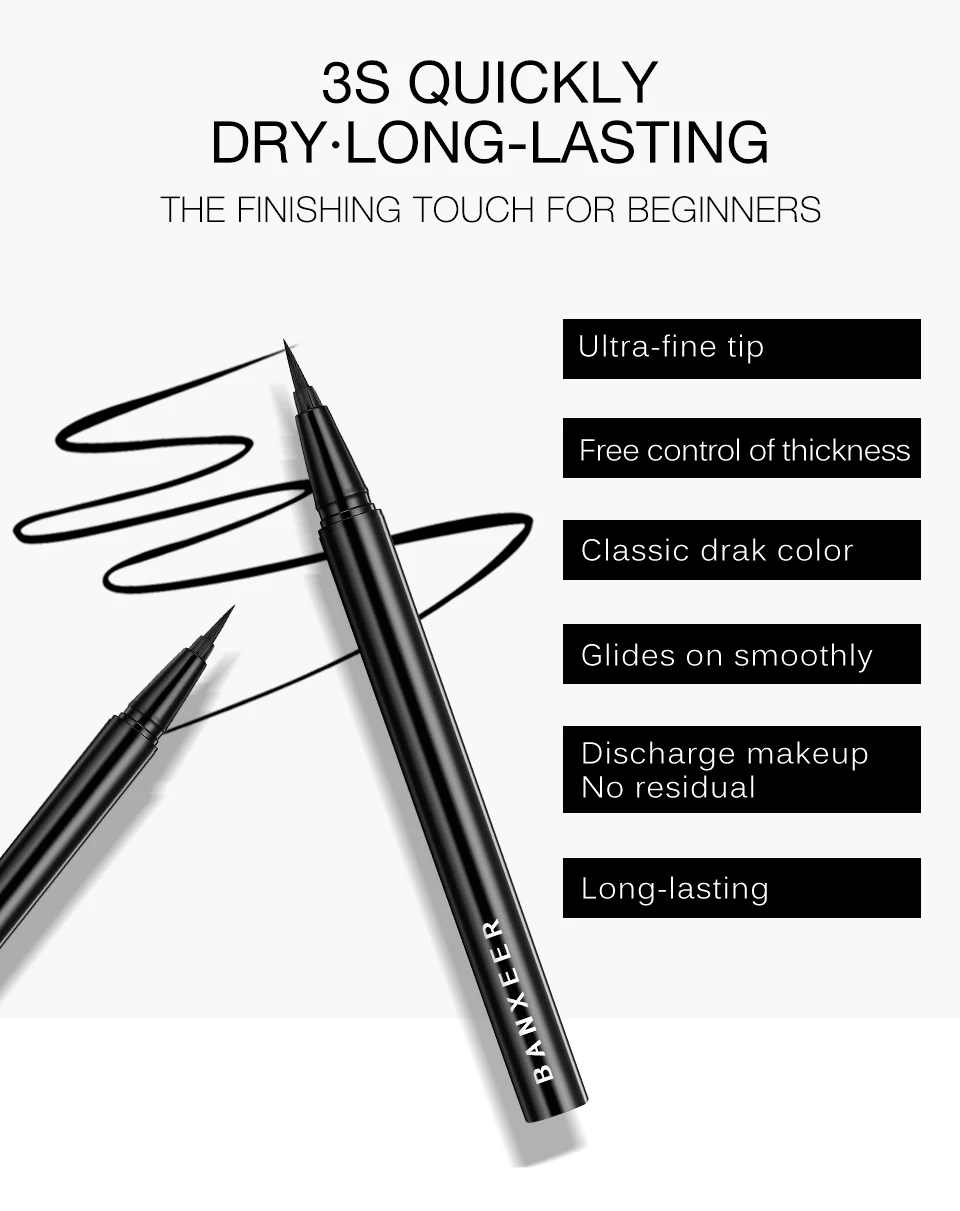 1. 3 s быстро сохнет: 0,1 мм Сверхтонкий войлочный наконечник, без пятен, быстро сохнет за 3 секунды. 2. Длительный срок: до 24 часов без размазывания. 3. Водонепроницаемость и защита от пота: Новая усовершенствованная, водонепроницаемая и маслостойкая формула. 4. Богатая и кремовая текстура, мягкий и ультра-тонкий наконечник, гладкий и приятный дизайн глаз