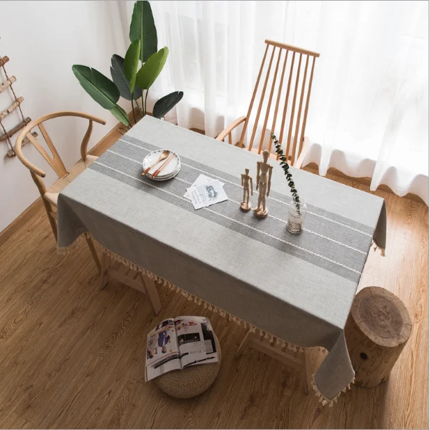 Декоративная льняная скатерть в клетку с кисточками, маслостойкая плотная прямоугольная скатерть для свадебного обеденного стола, кофейно-серая чайная скатерть