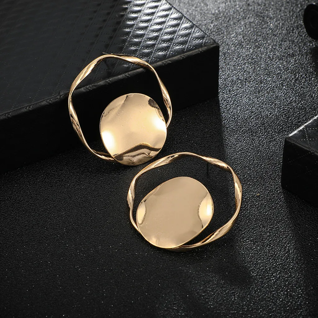 Женские преувеличенные Асимметричные геометрические серьги с диском Винтажные Ювелирные изделия из сплава