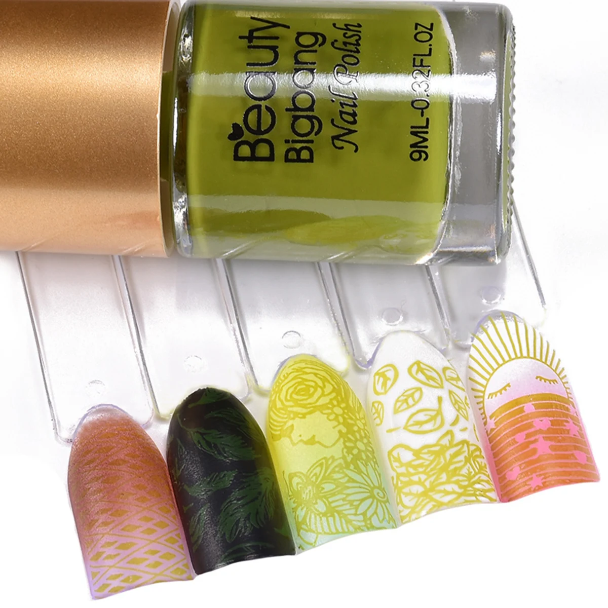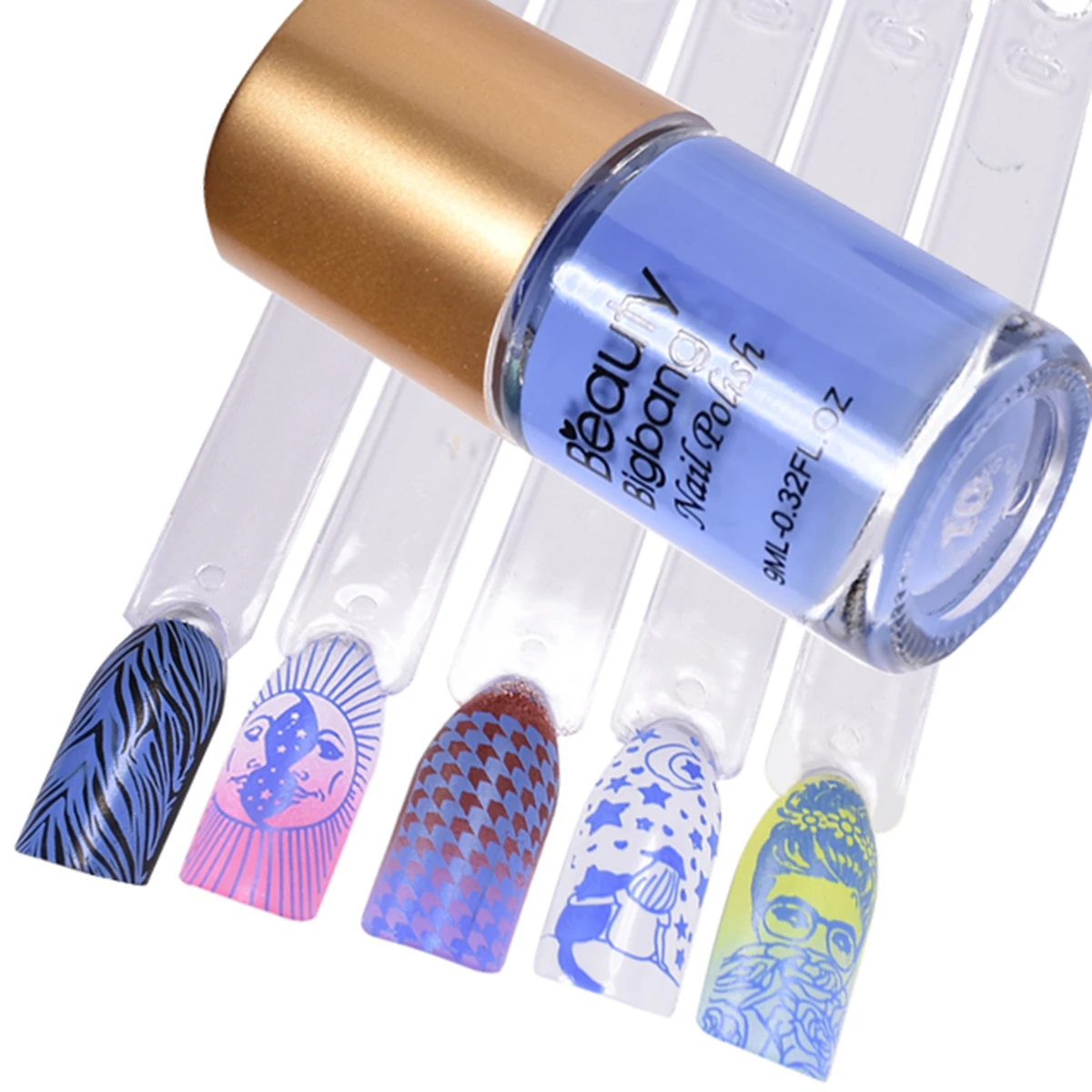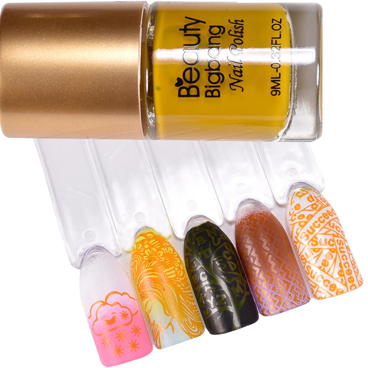 100% новые и высококачественные быстро высыхает специальный лак для ногтей для дизайна ногтей и печати цветов. Превосходное качество и новый товар. Простой в использовании: встряхните или хорошо перемешайте перед использованием. Посылка включает в себя: 1 шт. лак для штамповки BEAUTYBIGBANG