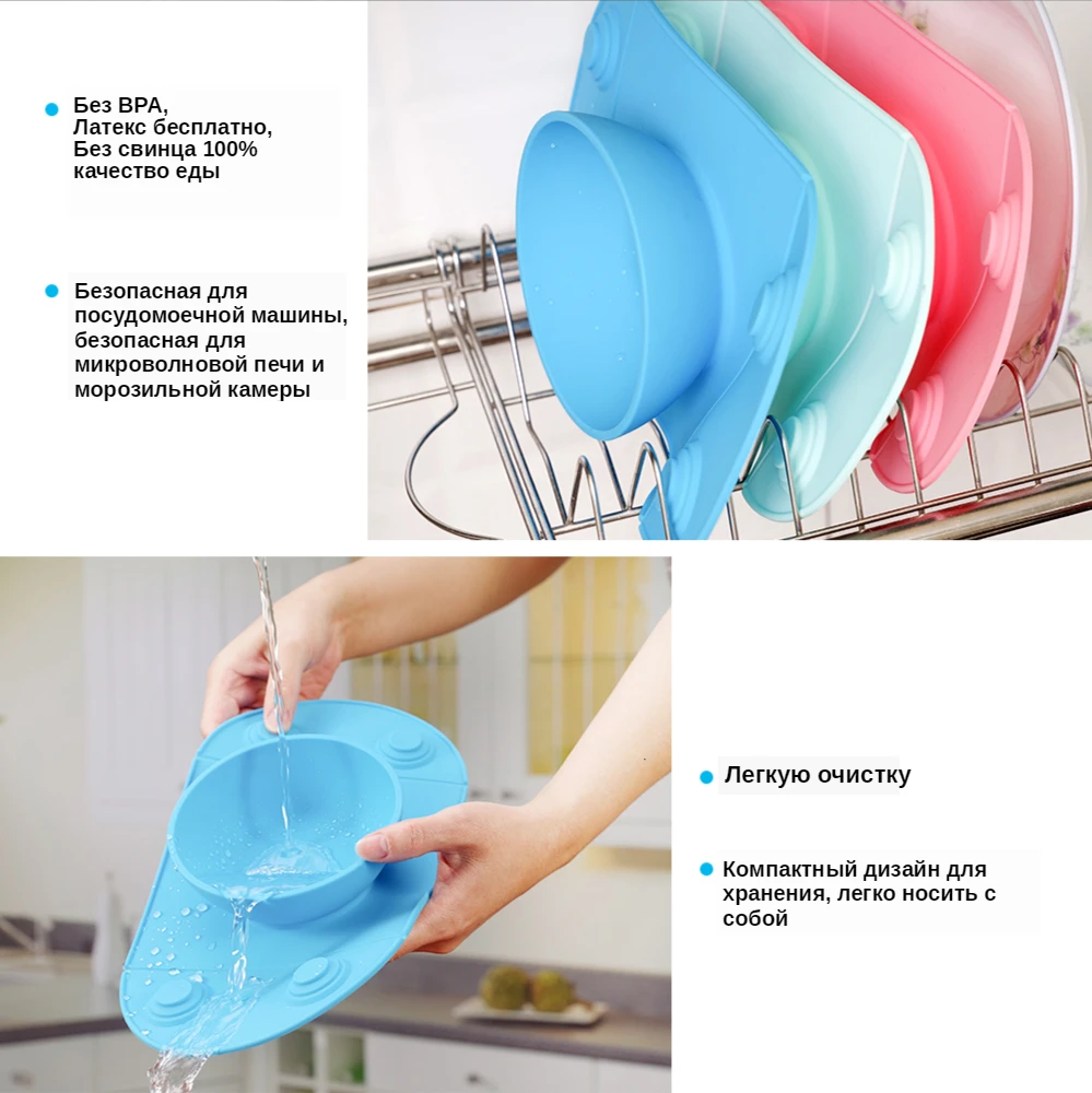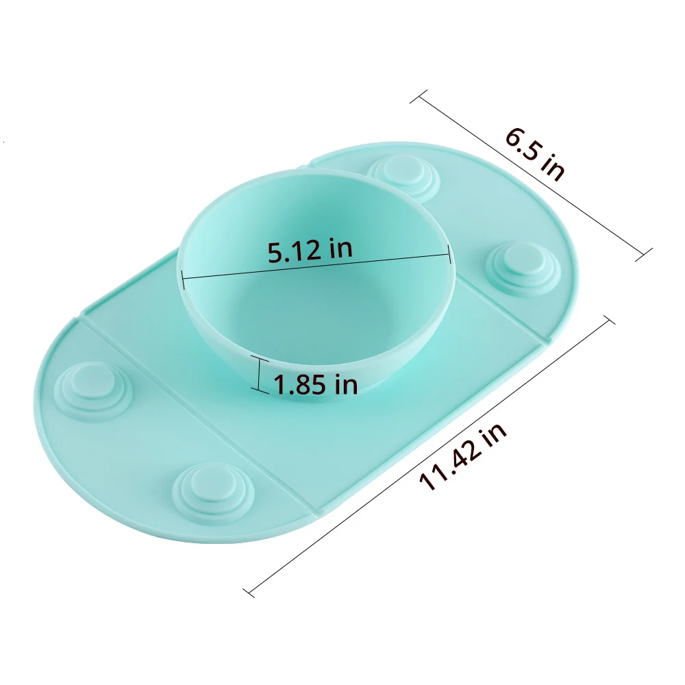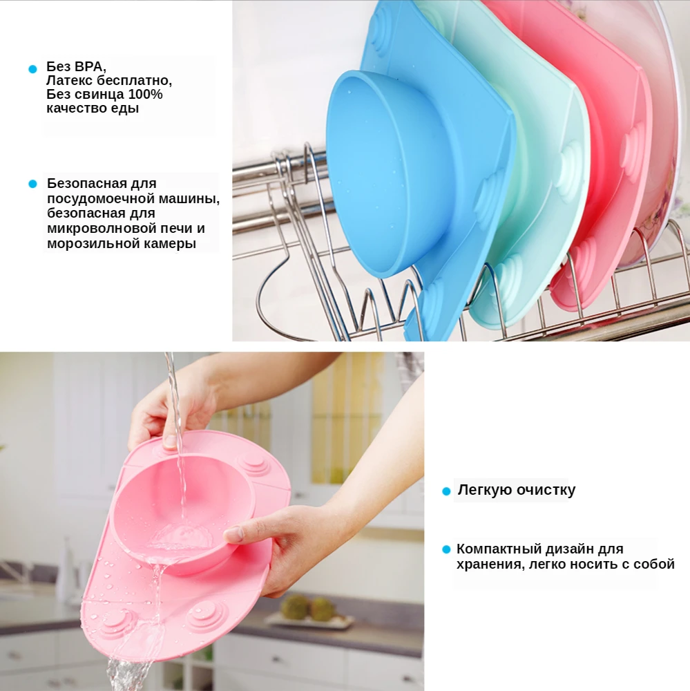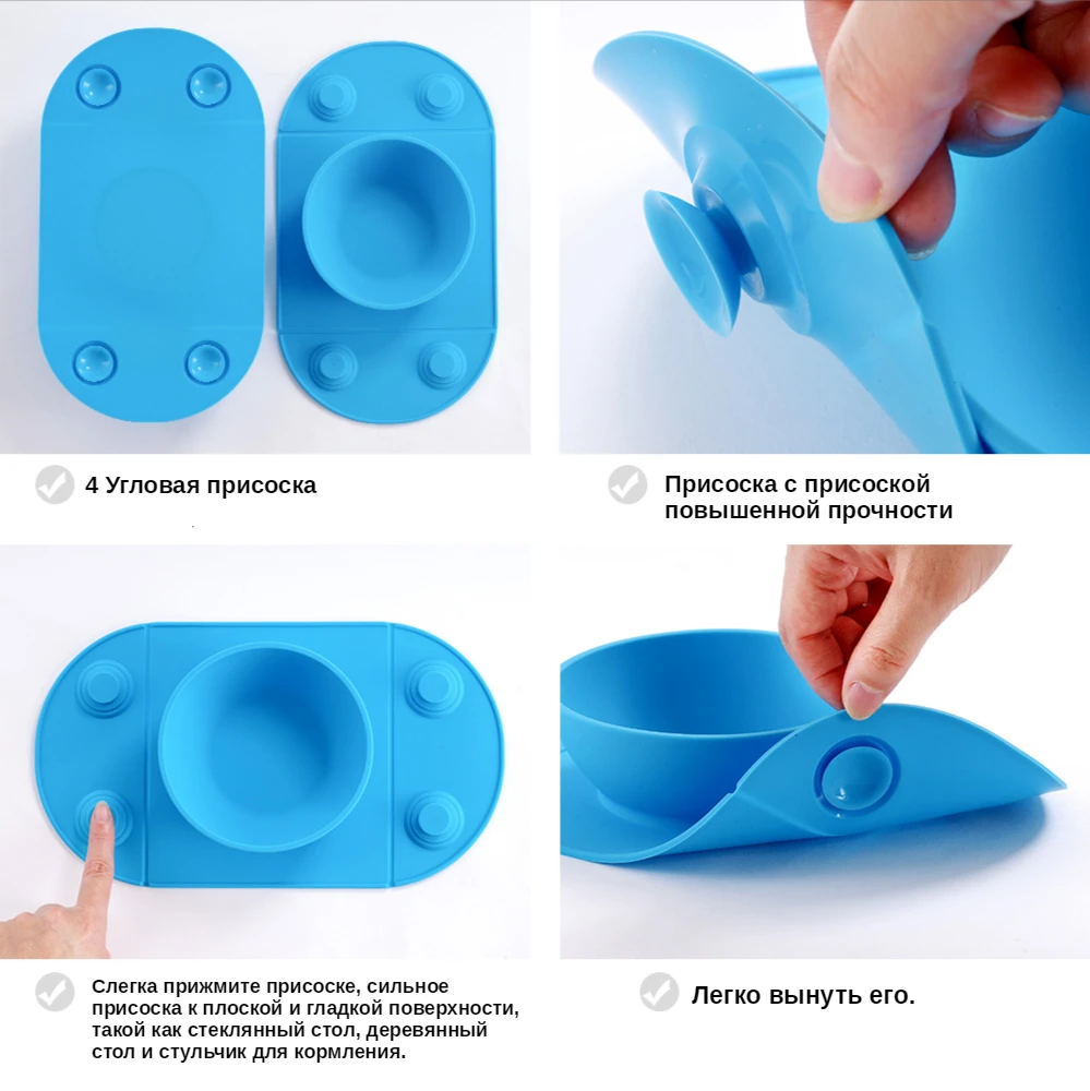 Товар: Детская универсальная подставка под тарелку + миска Размеры: Длина: 29 см (11,42 дюйма) Диаметр: 16,51 см (6,5 дюйма) Высота: 4,70 см (1,85 дюйма) Вес: 210 г (без крышки) Безопасное и надежное: Изготовлен из высококачественного пищевого силикона, который 100% BPA, BPS, PVC, латекса и ФТАЛАТА бесплатно. Метод очистки: Можно мыть в посудомоечной машине или мыть вручную теплой мыльной водой. Столовые приборы с 4 чашками Sucion, сильно всасываются на любую плоскую поверхность, чтобы уменьшить чаши/тарелки с наконечниками.