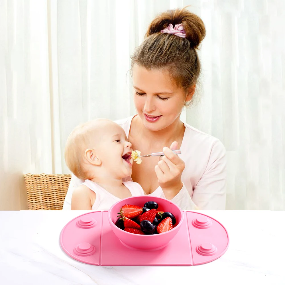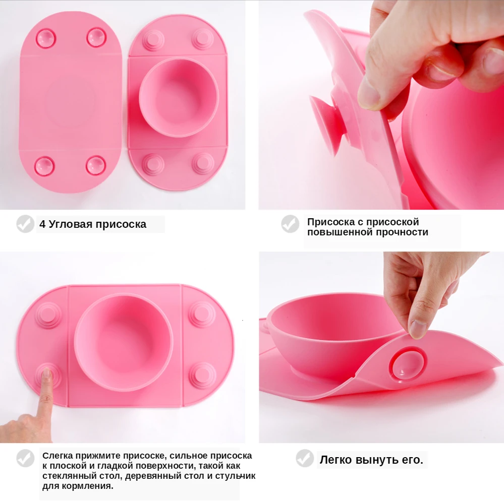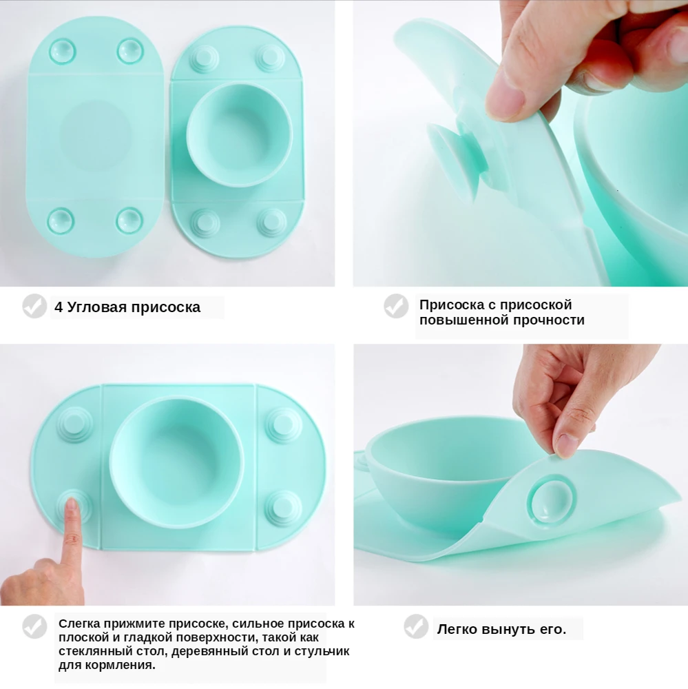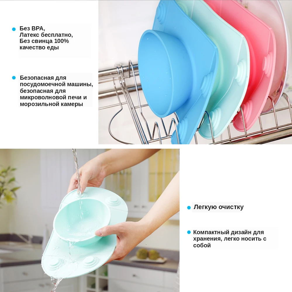 Товар: Детская универсальная подставка под тарелку + миска Размеры: Длина: 29 см (11,42 дюйма) Диаметр: 16,51 см (6,5 дюйма) Высота: 4,70 см (1,85 дюйма) Вес: 210 г (без крышки) Безопасное и надежное: Изготовлен из высококачественного пищевого силикона, который 100% BPA, BPS, PVC, латекса и ФТАЛАТА бесплатно. Метод очистки: Можно мыть в посудомоечной машине или мыть вручную теплой мыльной водой. Столовые приборы с 4 чашками Sucion, сильно всасываются на любую плоскую поверхность, чтобы уменьшить чаши/тарелки с наконечниками.