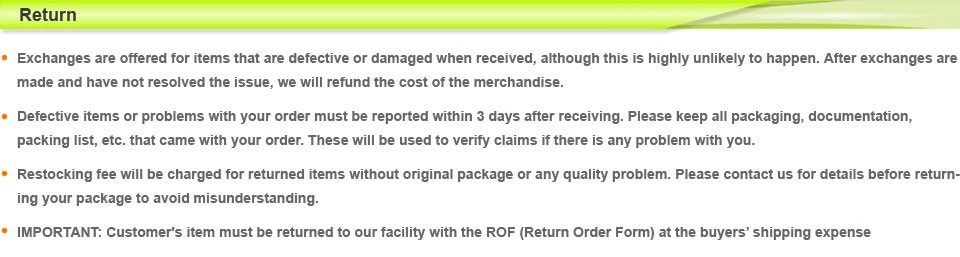 6. Если у вас есть какие-либо проблемы, пожалуйста, свяжитесь с нами. Мы предоставимПредпродажное и послепродажное обслуживание все время.Наслаждайтесь покупками!