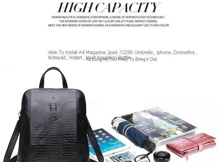 Женский кожаный рюкзак высокого качества, Новое поступление, модный рюкзак на молнии из крокодиловой воловьей кожи