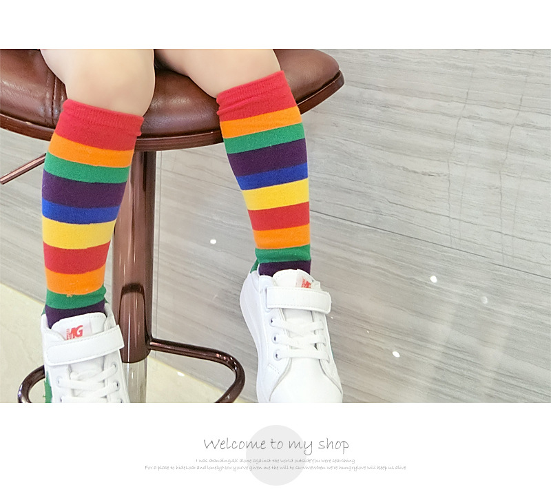 Детские гольфы; сезон весна-осень хлопковые носки для девочек, подходящие к цвету радуги трикотажные Дышащие носки для малышей; От 2 до 10 лет