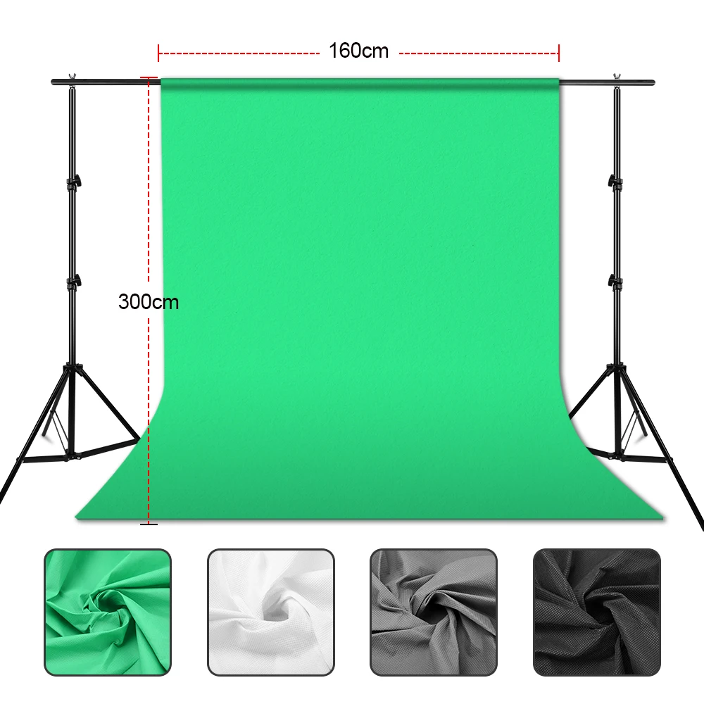 Этот набор для фона поставляется с тремя вариантами поддержки фона. Фон достаточно большой для большинства фотографий, таких как съемка полной портретной съемки небольшой группы людей или предоставление полного фона для различных поз модели в сидении, стоя или даже лежа. Фоны полезны в фотографии для обеспечения профессионального вида ваших фотографий. Этот комплект включает в себя один белый, один черный и один хромаки Зеленый Нетканый фон. Фон с изображением: Преимущество: стоимость меньше, прост в использовании, подходит для всех приложений, таких как фильмы спецэффектов и фотографии, Портативный и складной, чтобы впитать весь светильник без отражения. Размеры: 1,6*3 м (5FT * 10FT) Материал: Нетканая ткань Цвет: белый, черный и зеленый Примечание: Вы можете облегчить использование этих способов, когда дело доходит до некоторых складок: 1. Используйте влажное полотенце, чтобы вытереть складки, а затем используйте книгу, чтобы нажать на нее некоторое время; 2. Закатайте фон и отложите его в сторону. ** Высокотемпературный паровой утюг не допускается. Фон для фотографий: Функция: держать фоны и 2*2 м Фон Стенд Легкий, сверхмощный и расширяемый как для студии, так и для улицы и всех случаев, чрезвычайно подходит для всех фотографов уровня. Тип: комплект перекладин с подставкой Материал: Алюминий Высота: до 2 м/6,6 футов Ширина: до 2 м/6,6 футов Посылка Размер: 85,5*17*11 см/33,7*6,7 * 4.3in Посылка: 1x1,6*3 м черный фон 1x1,6*3 м белый фон 1x1,6*3 м зеленый фон 1x2 м * 2 м фоновая подставка 1 х сумка для переноски для фоновой поддержки 3 x зажимы