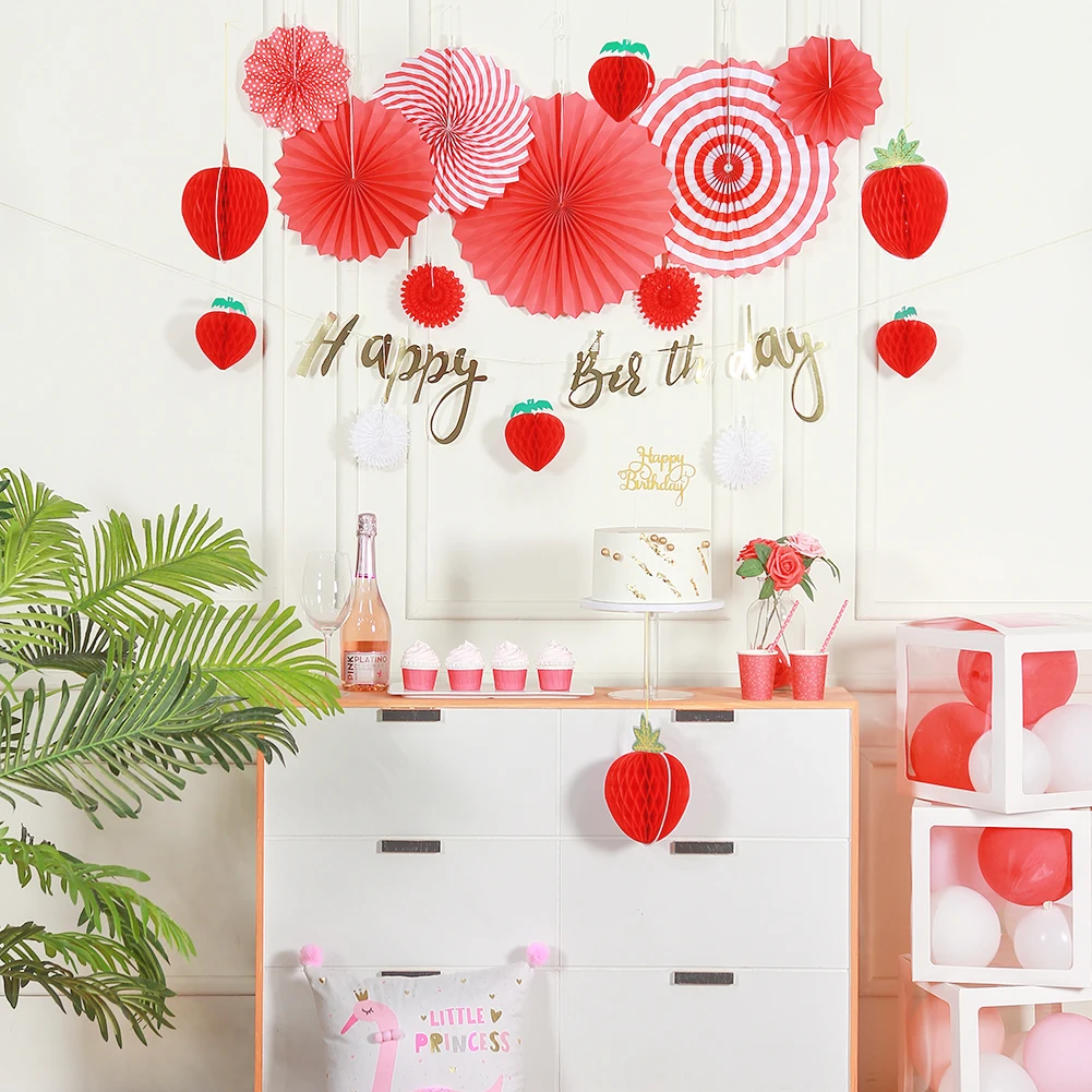 Клубничная тематическая вечеринка на день рождения набор украшений сотовая клубника Висячие с днем рождения баннер торт Топпер бумажные вентиляторы летний домашний декор для девочек
