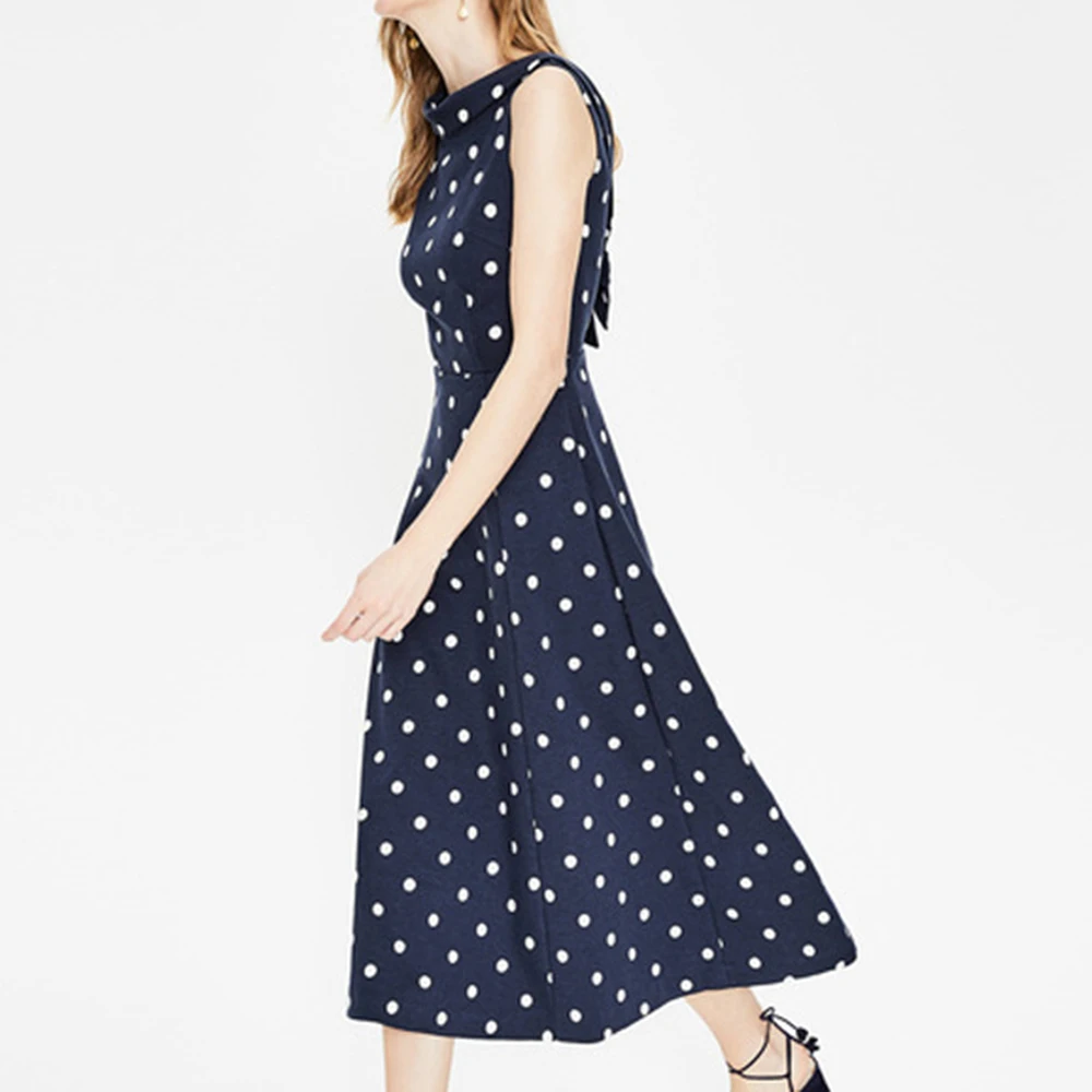 * Описание товара: женское летнее платье в горошек без рукавов с бантом и открытой спиной, черное миди-платье