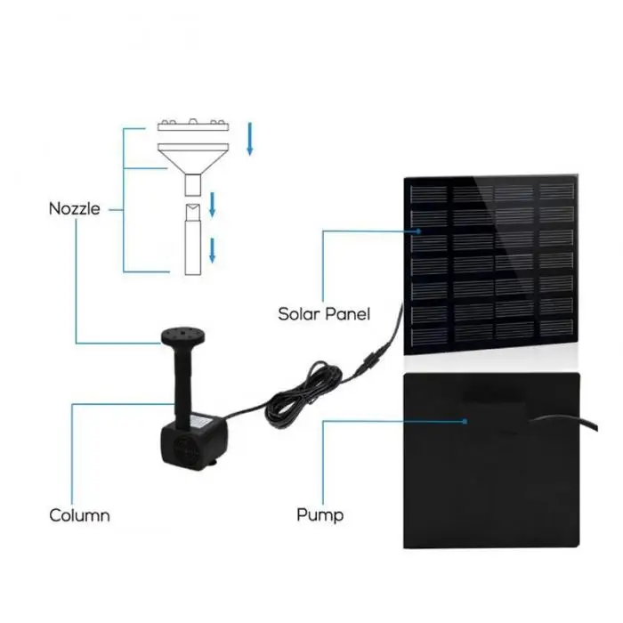 Высота распыления воды полностью зависит от силы Солнца. При слабом солнце насос не будет работать непрерывно, но автоматически начнет работать до тех пор, пока солнце не достигнет определенной интенсивности. Возобновите непрерывную работу.