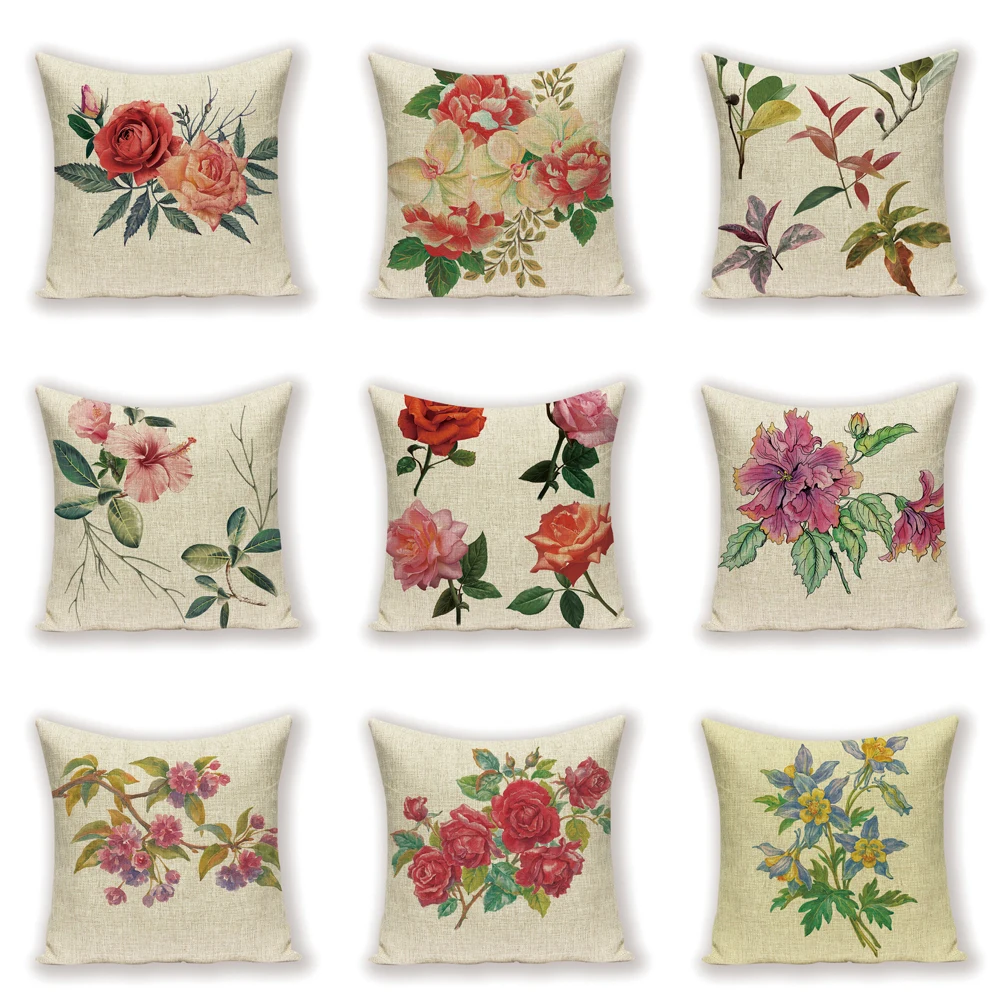 Винтажные наволочки для подушки для домашнего декора, наволочки для растений, льняные наволочки для подушки 45X45 см, подушки для гостиной на заказ с цветами