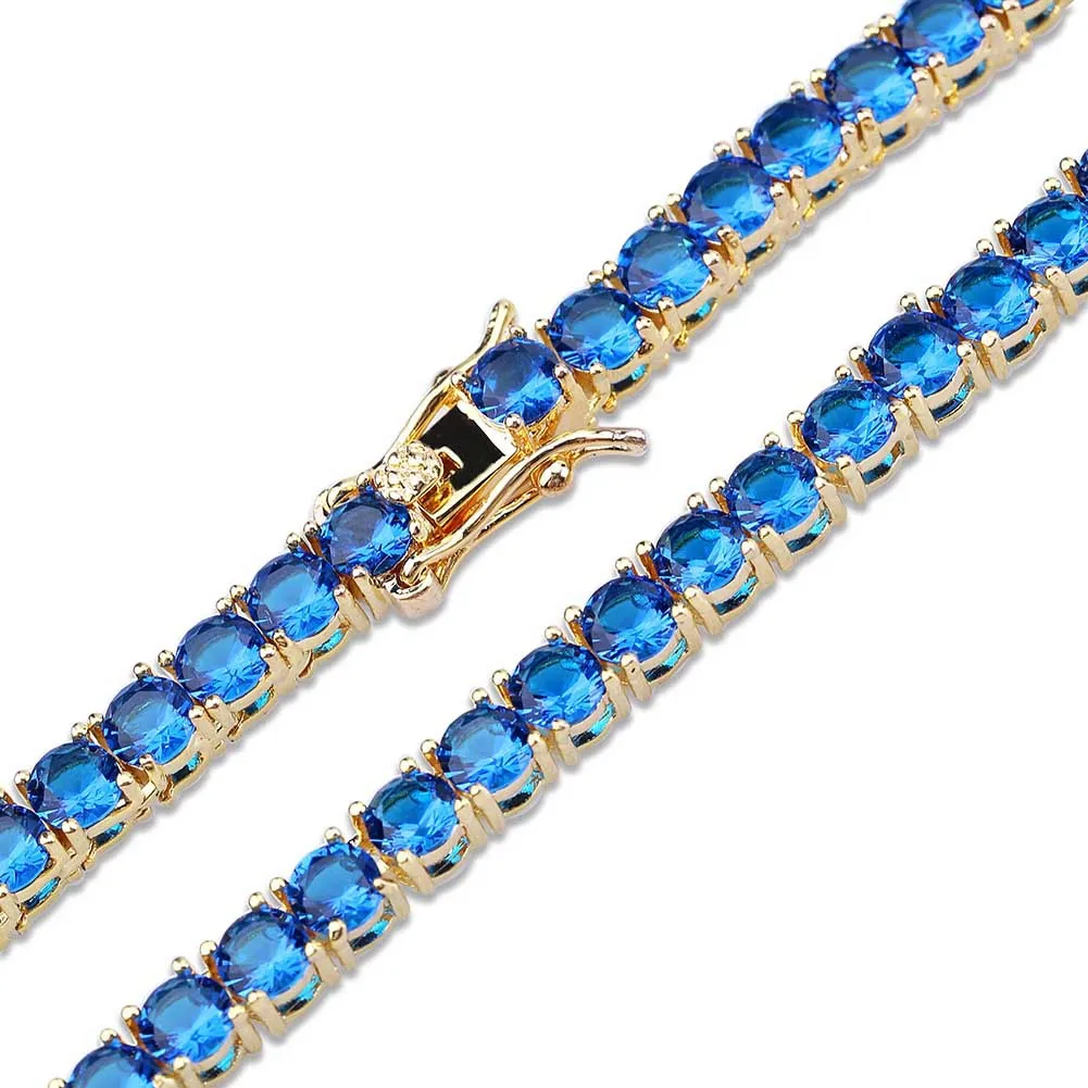 Высокое качество 4 мм Iced Out Синий Красный CZ теннисная цепочка Ожерелье для мужчин хип-хоп/панк золотой серебряный цвет персонализированные цепочки ювелирные изделия подвески