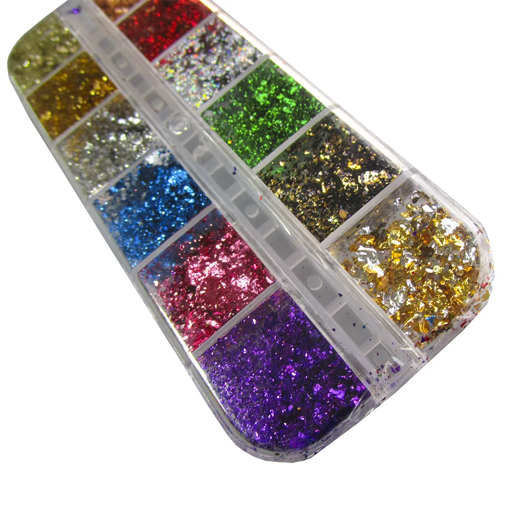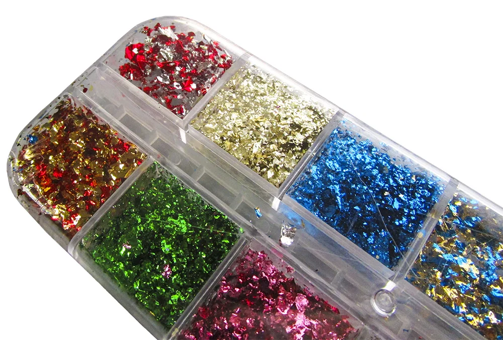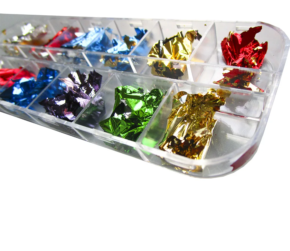 Целевой клиент: любители ручной работы, любители ногтевого искусства, дизайнеры, фольгированные листья хлопья и блестки в цветах; золото, серебро, зеленый, красный, фиолетовый, синий, роза, медь и разноцветное золото. Подходит для натуральных и искусственных ногтей.
