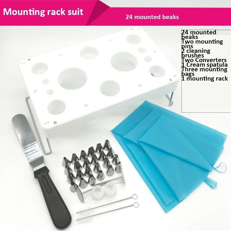 Список посылка: 24 * глазурные насадки, 2 * Цветочные гвозди, 2 * щетка для чистки, 2 * муфты, 3 * Кондитерские пакеты, 1 * кондитерский мешок стенд, 1 * Глазурь шпатель