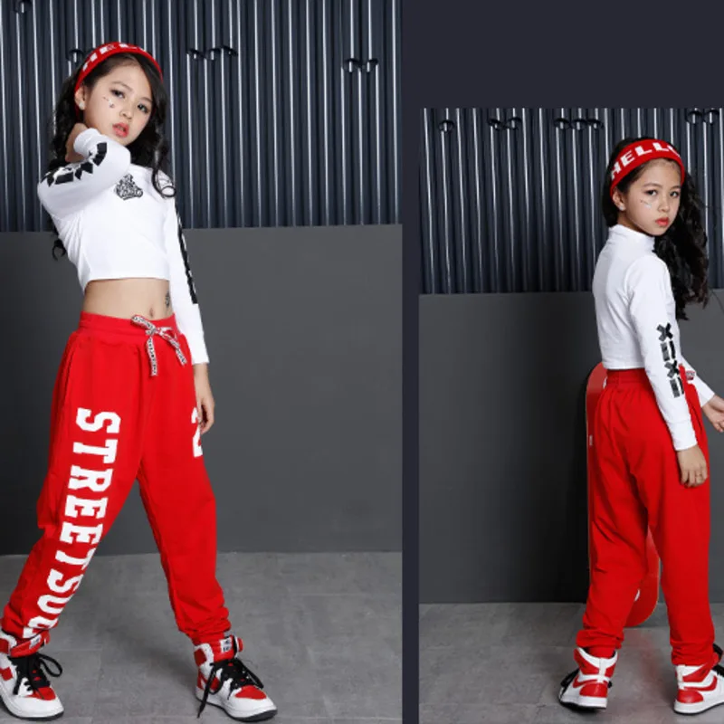 Рубашка с длинными рукавами и штаны для маленьких девочек; Модная уличная одежда, современная танцевальная одежда в стиле «хип-хоп» для уличных танцев; Костюмы и комплекты одежды для маленьких детей