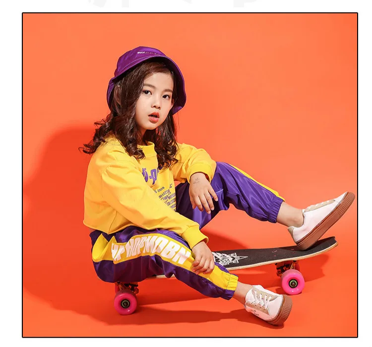 Укороченный топ с длинными рукавами, рубашка штаны для маленьких девочек, модная уличная одежда, современный джаз, хип-хоп, уличный танцевальный костюм одежда для детей
