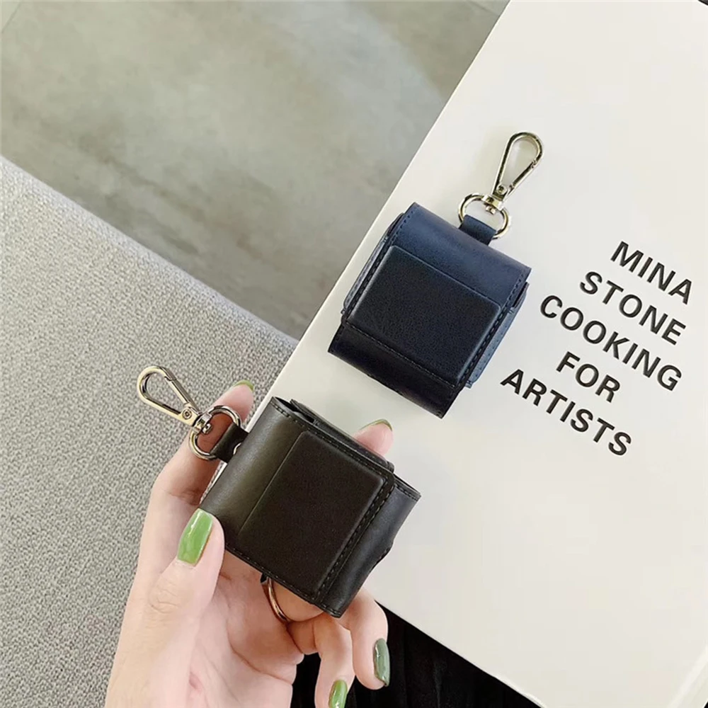 Для AirPods кожаный чехол Apple Bluetooth гарнитура откидной кожаный чехол для AirPods1/2 поколения универсальный темно-синий